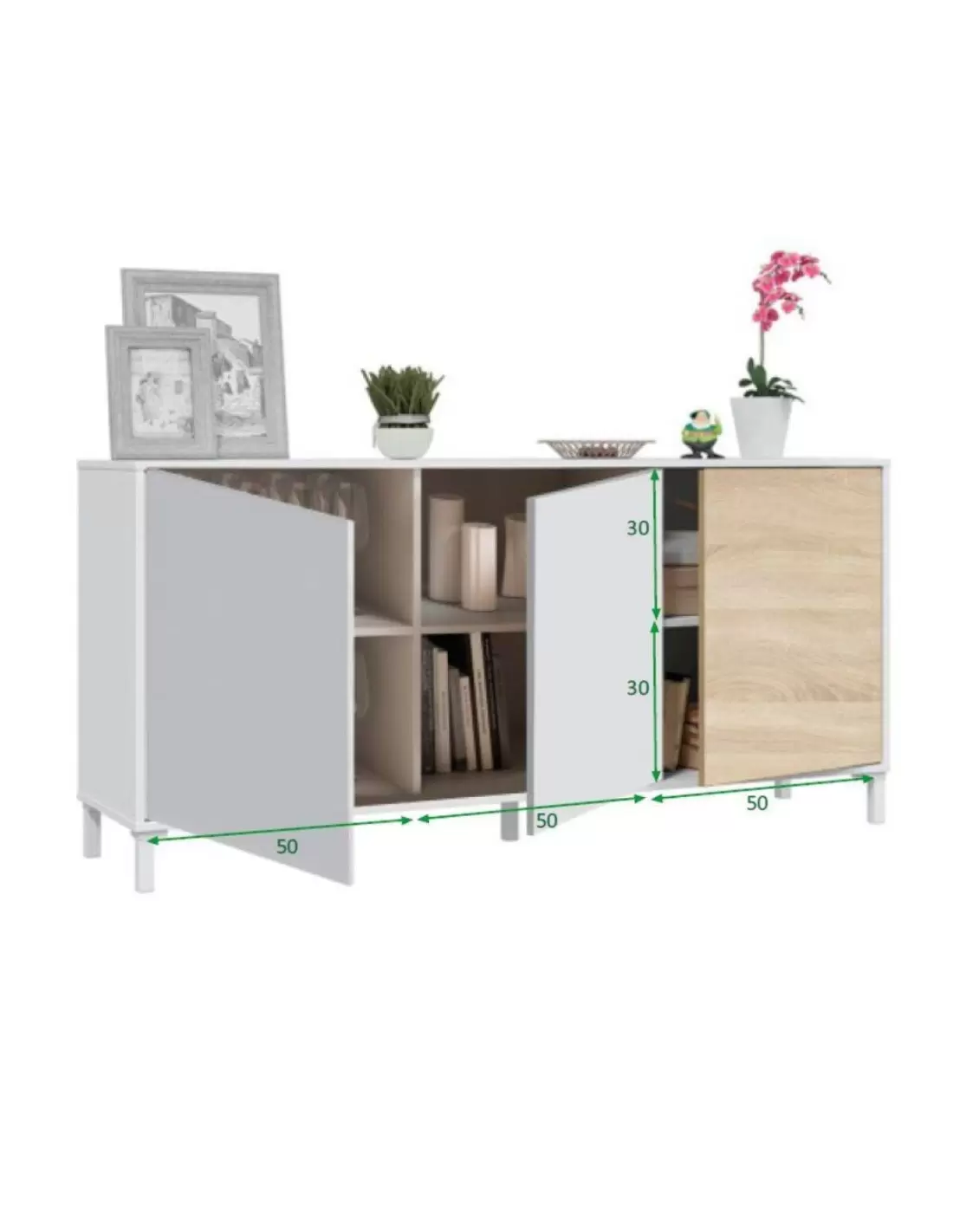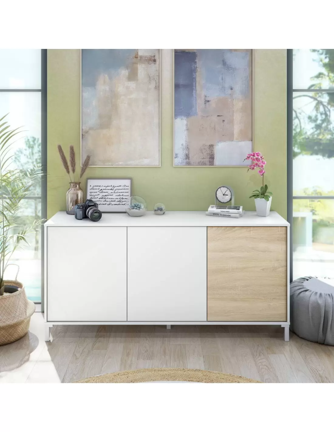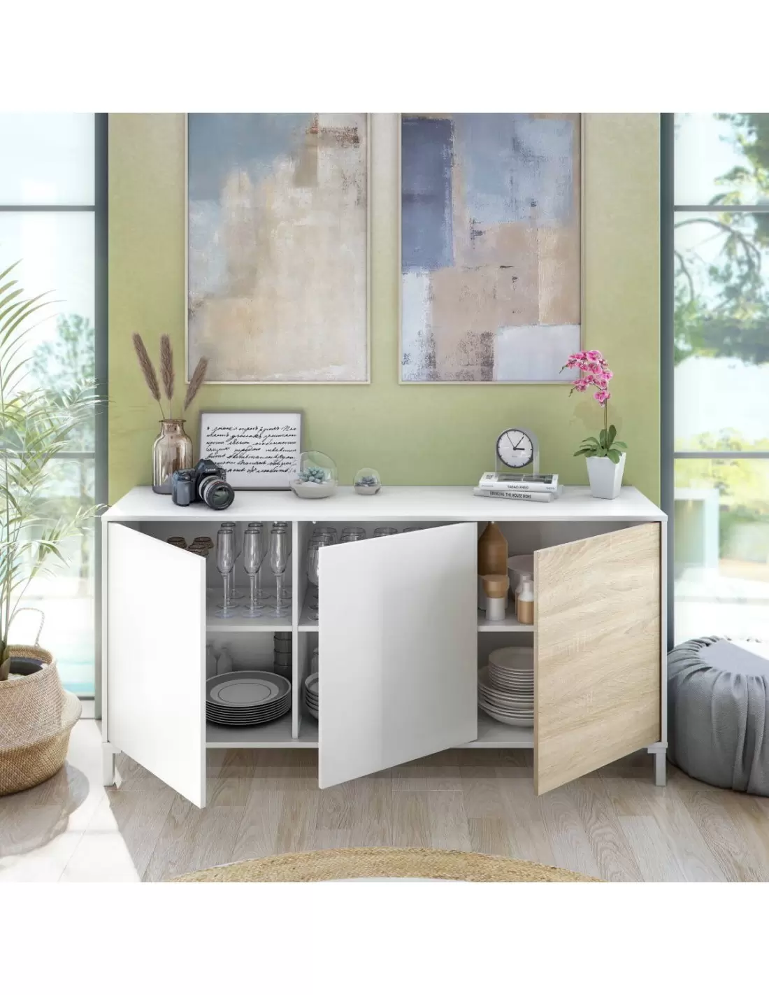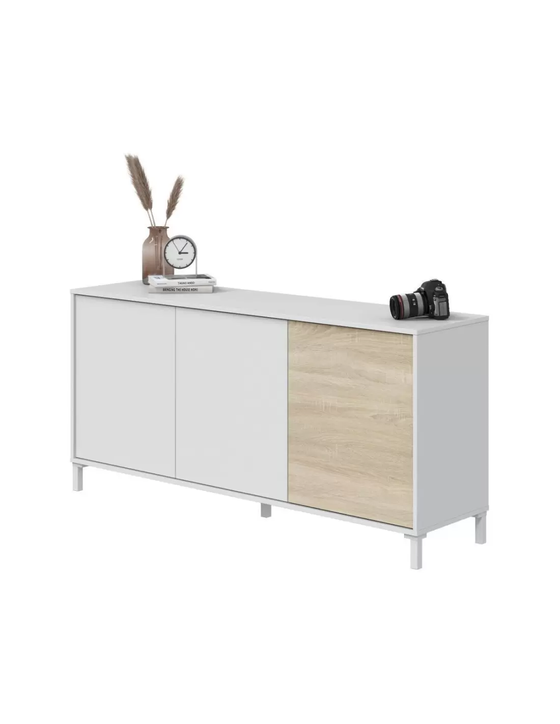 Aparador de 3 puertas CASUAL de 154 cm en color blanco artik y roble canadian