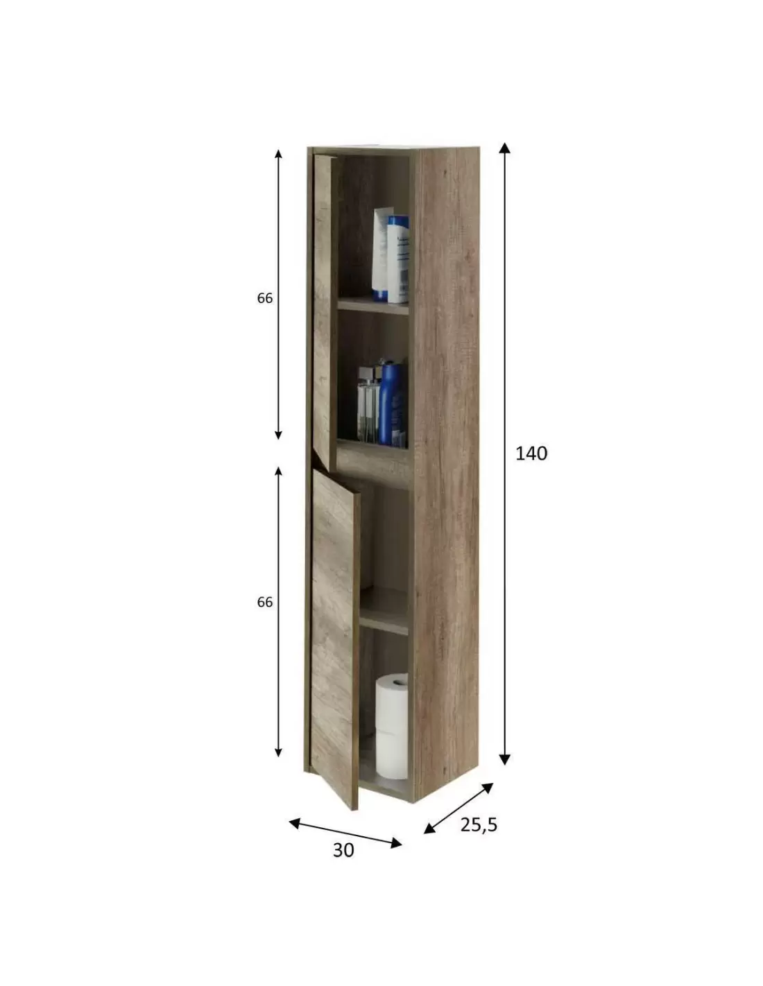 Columna de baño DAKOTA para colgar a la pared con 2 puerta color nordik de 30x25,5x140 cm