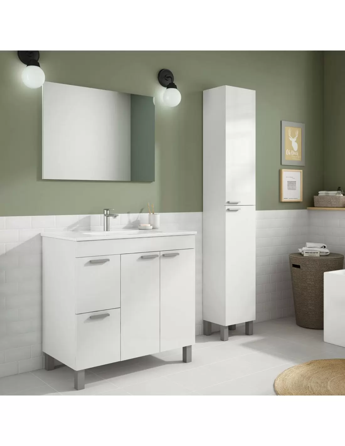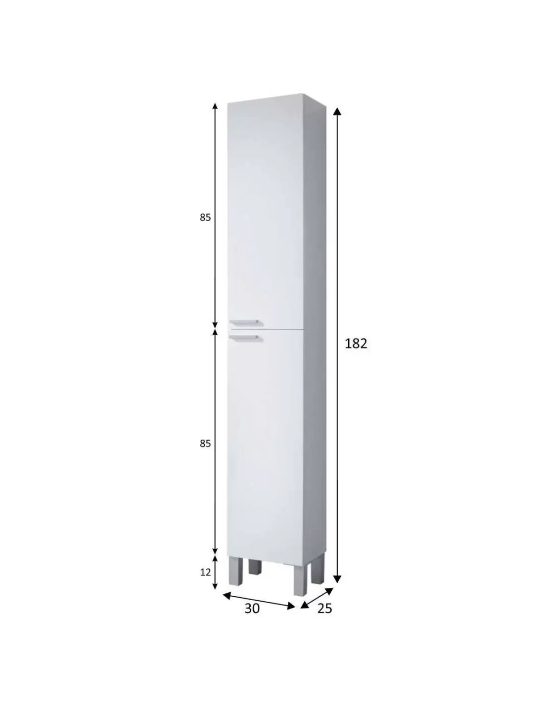Columna de baño de diseño moderno con dos puertas, disponible en color blanco brillo.
