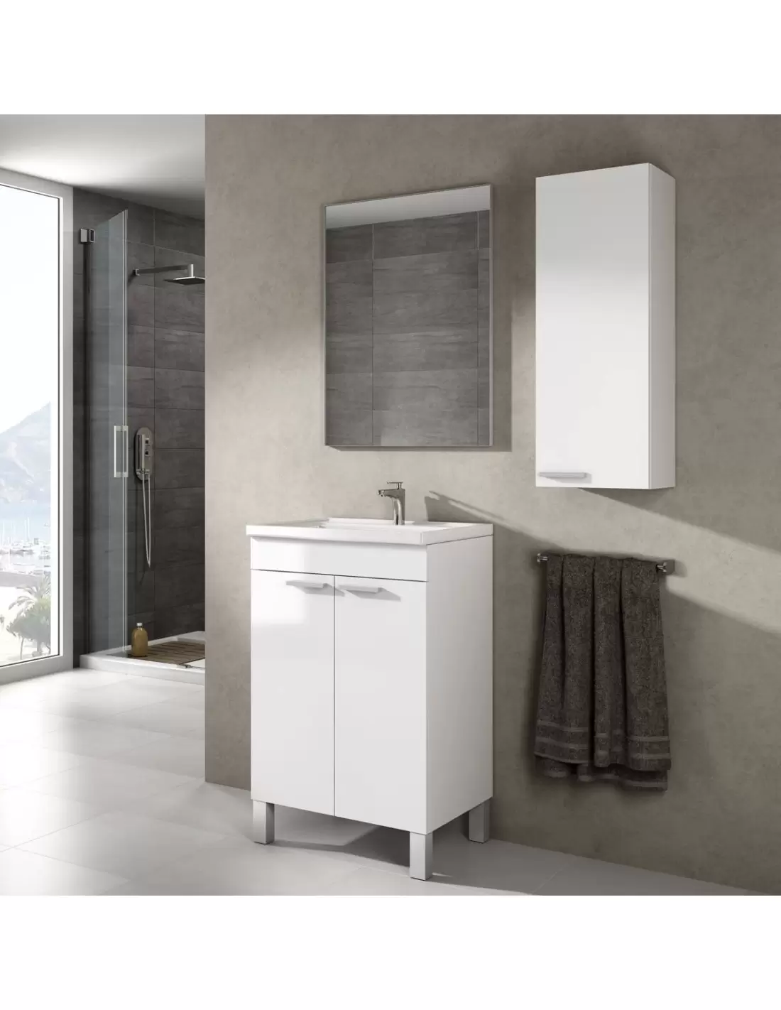 Columna de baño de diseño moderno para pared en color blanco brillo con 1 puerta.