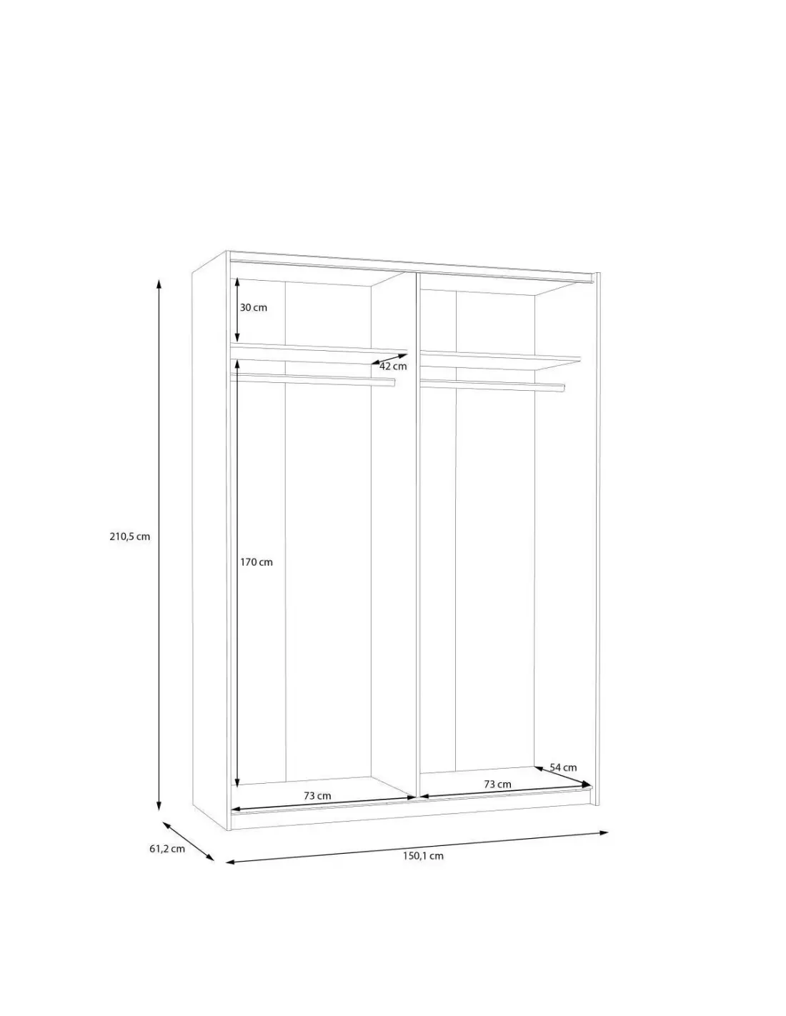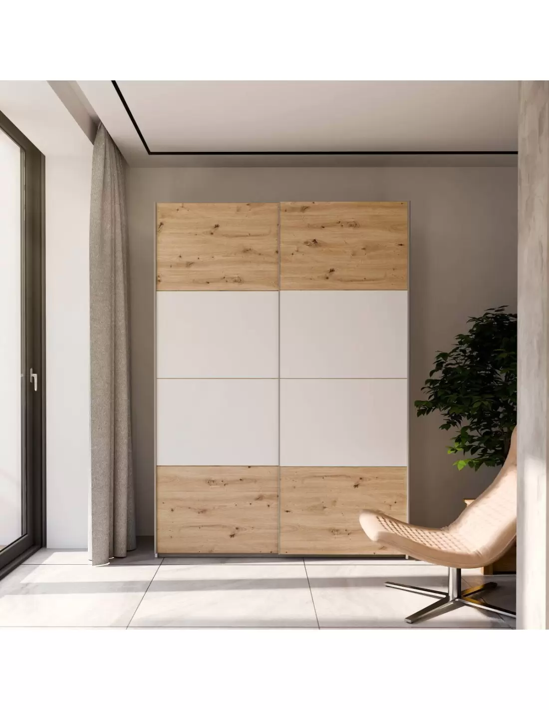 Armario de Puertas Correderas DOMY 220 cm – Blanco Mate o Roble Artisan
