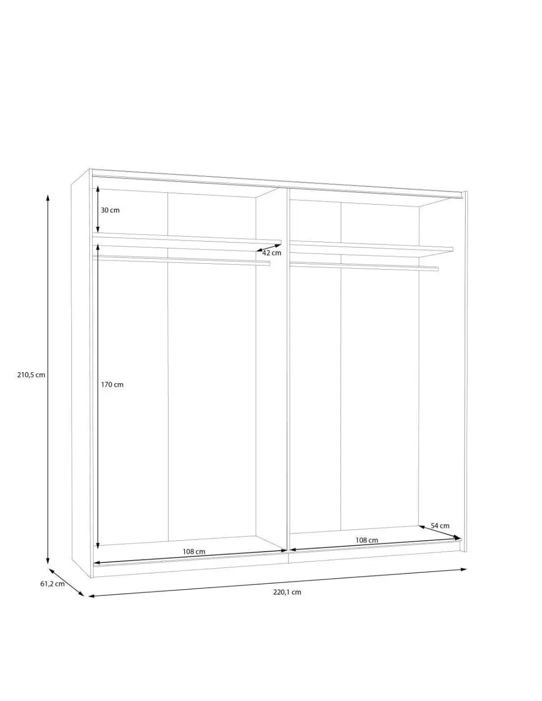 Armario de 2 puertas correderas 170 cm WINTER acabado laminado sintético blanco o roble...