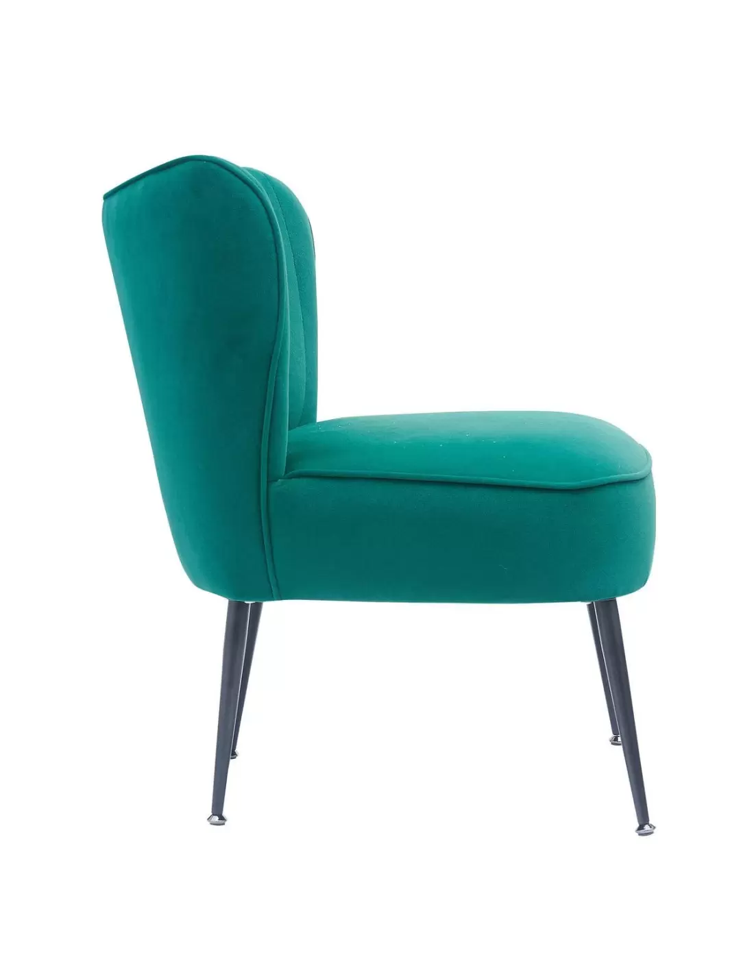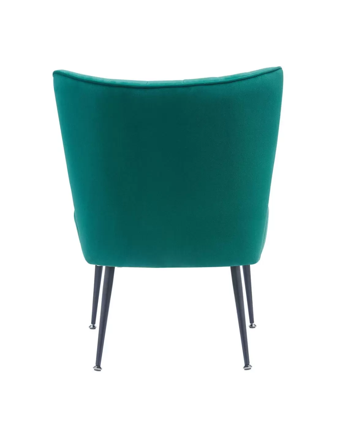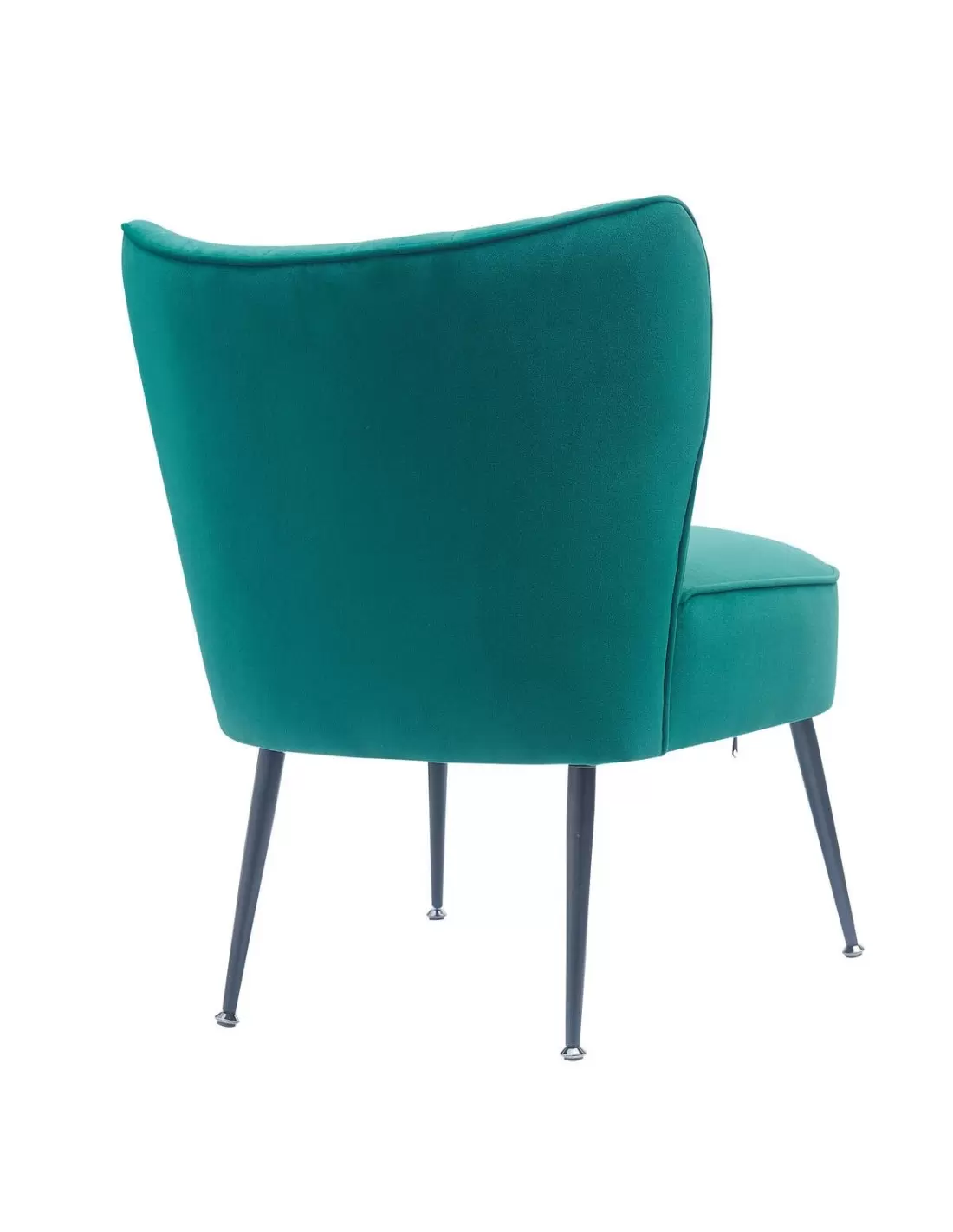 Butaca RUMA tapizada en tela velvet color rosa y pies de metal color negro