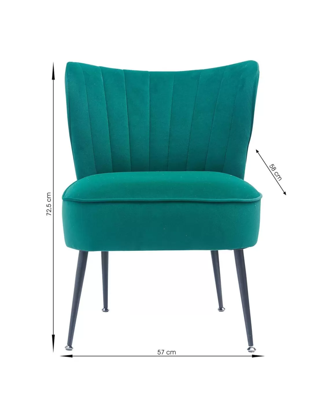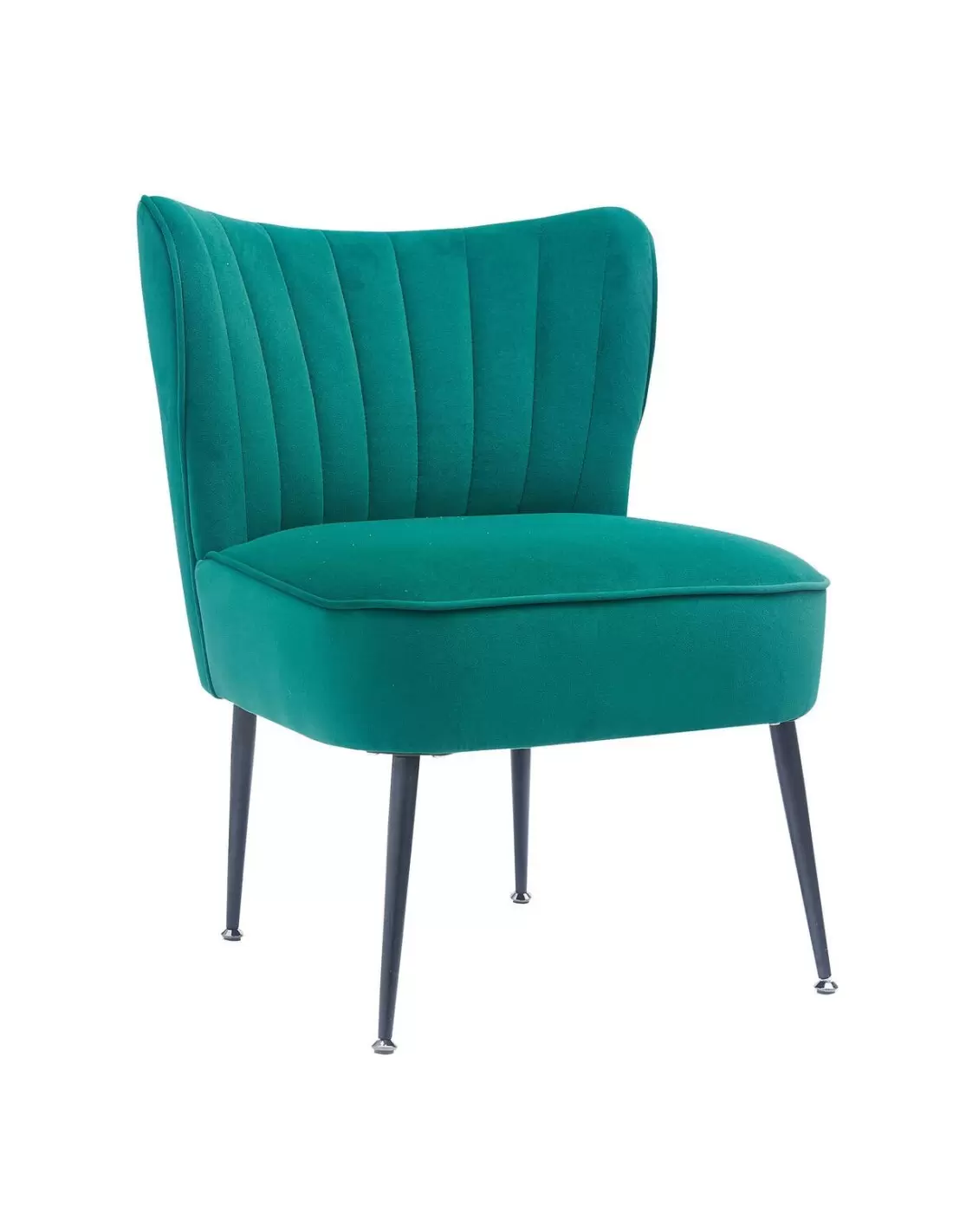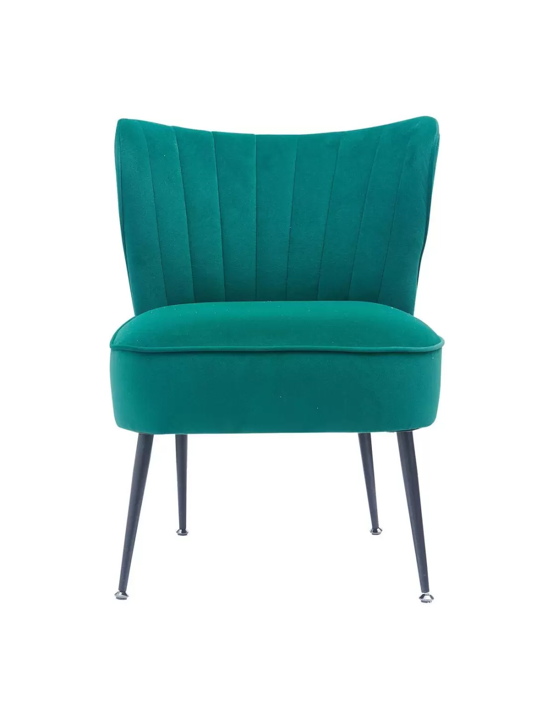 Butaca RUMA tapizada en tela velvet color rosa y pies de metal color negro