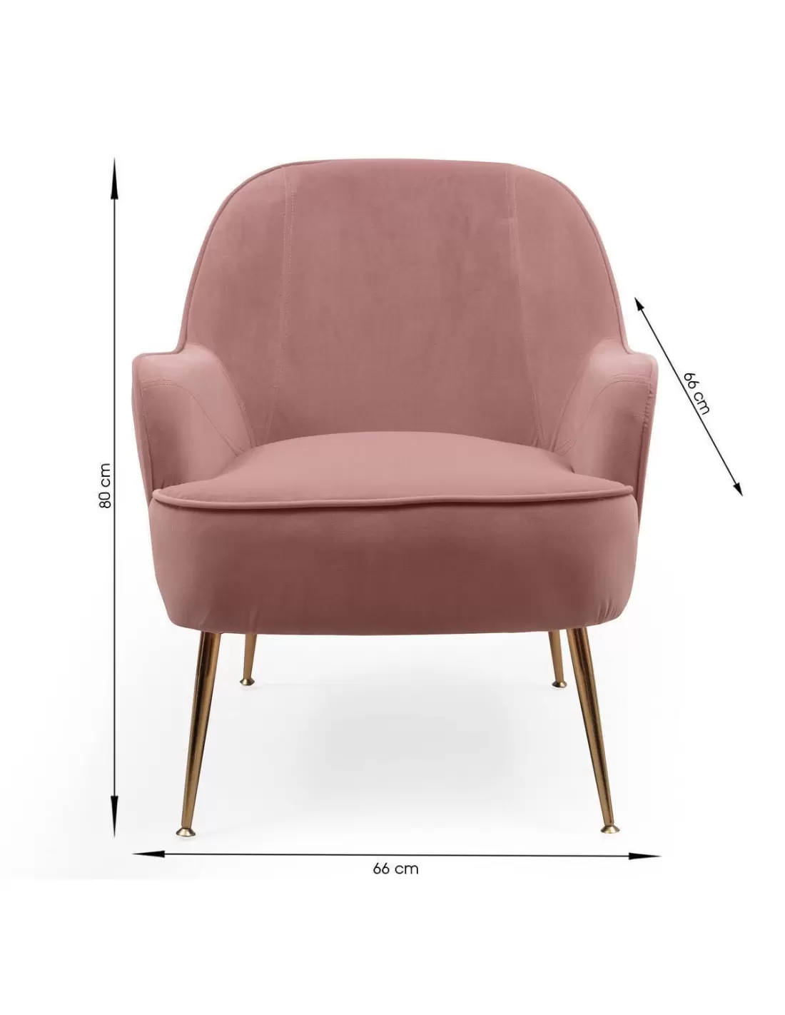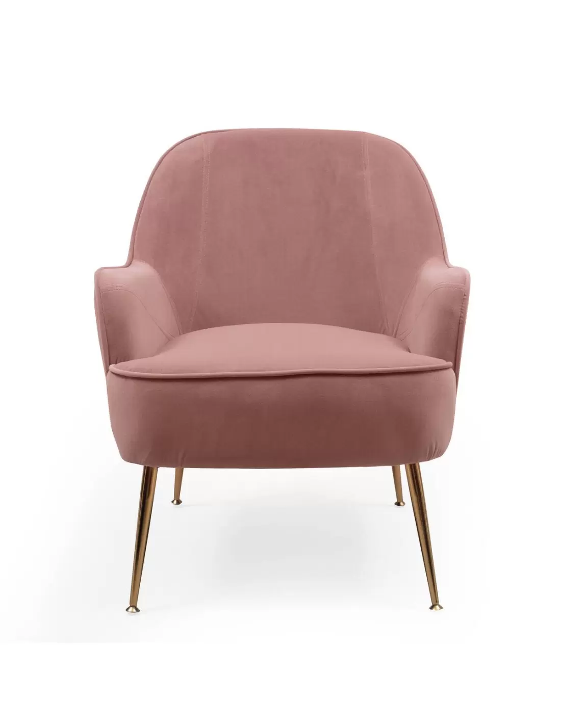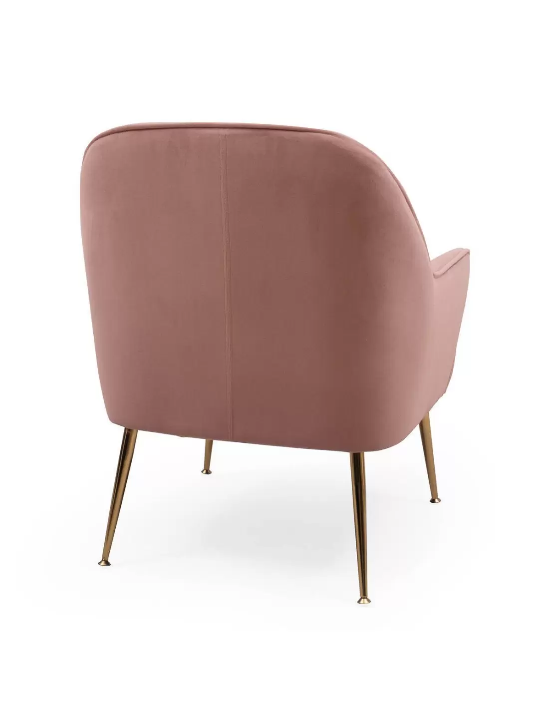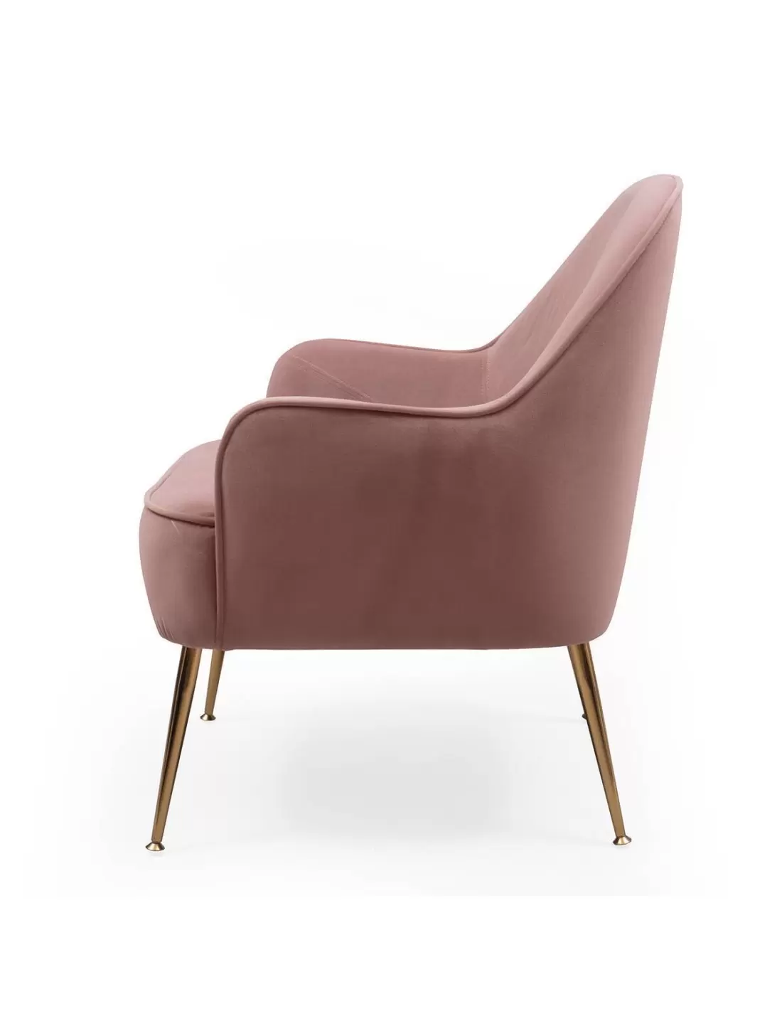 Butaca RUMA tapizada en tela velvet color rosa y pies de metal color dorado