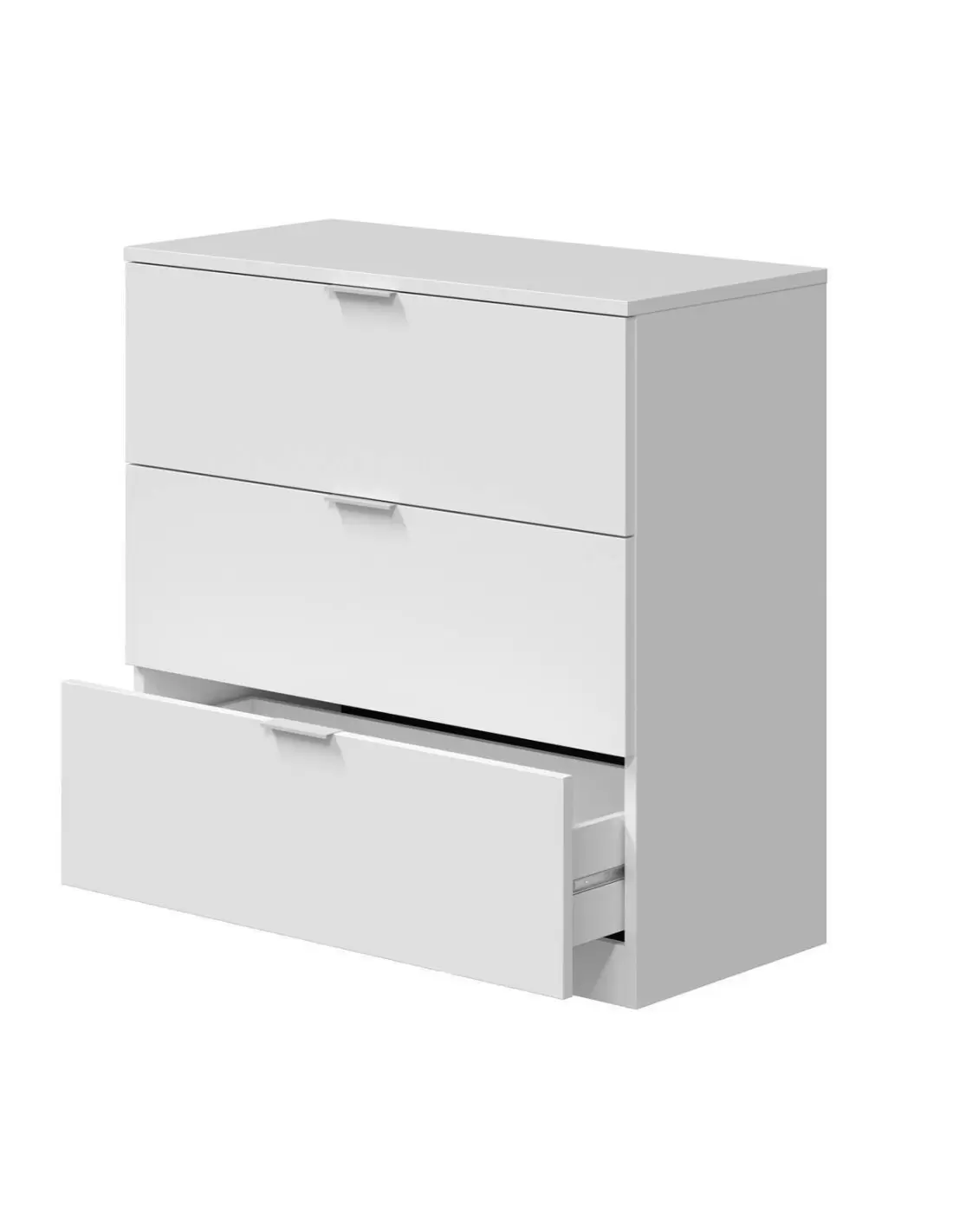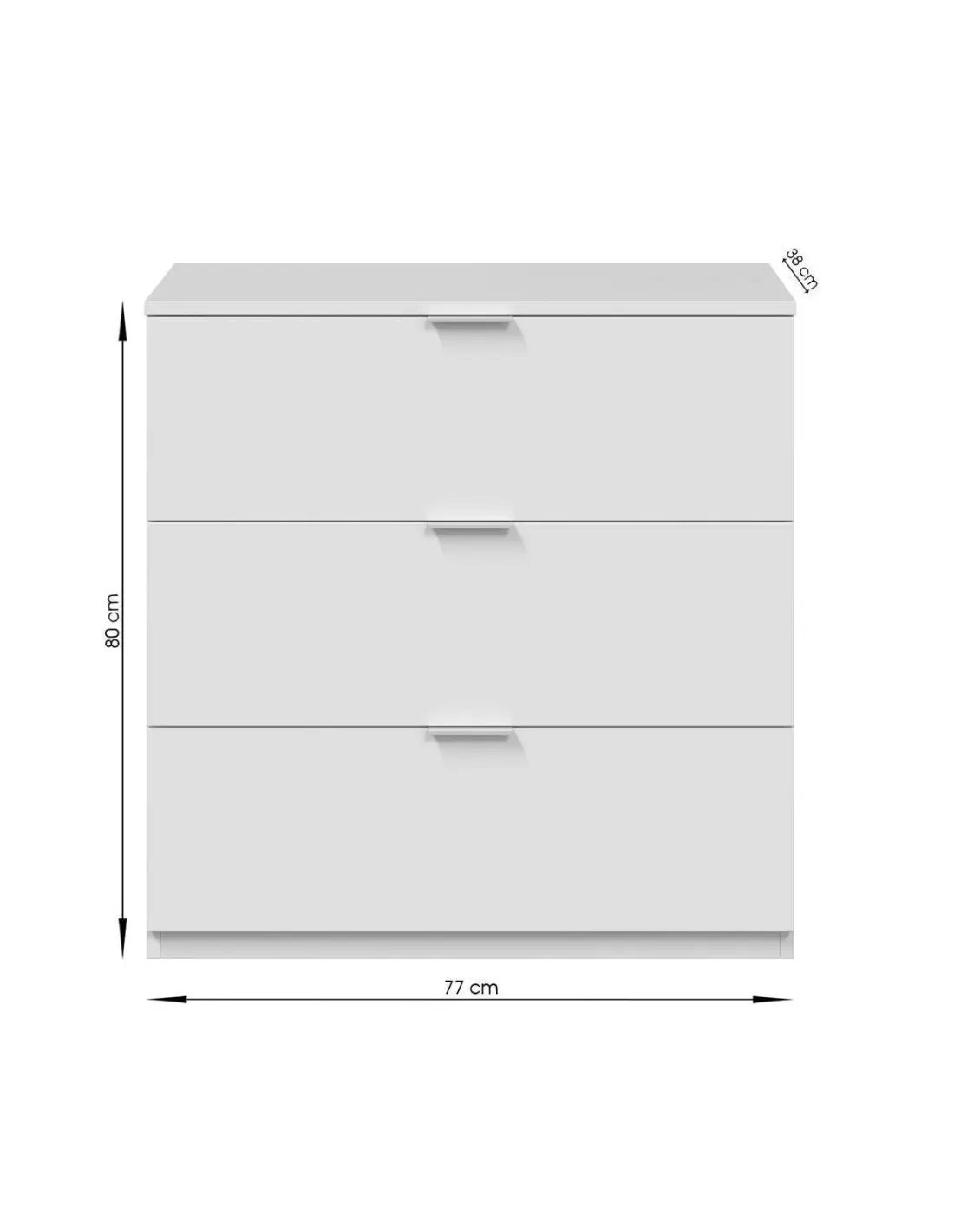 Cómoda de 3 cajones LIZ, tablero de partículas melaminizado color blanco, 77x38x80 cm