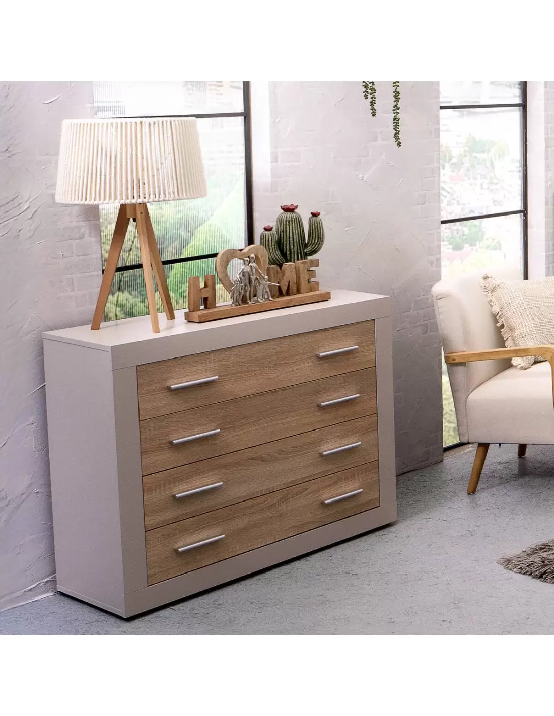 COIMBRA es una cómoda de 4 cajones de diseño moderno elegante, práctica y funcional.