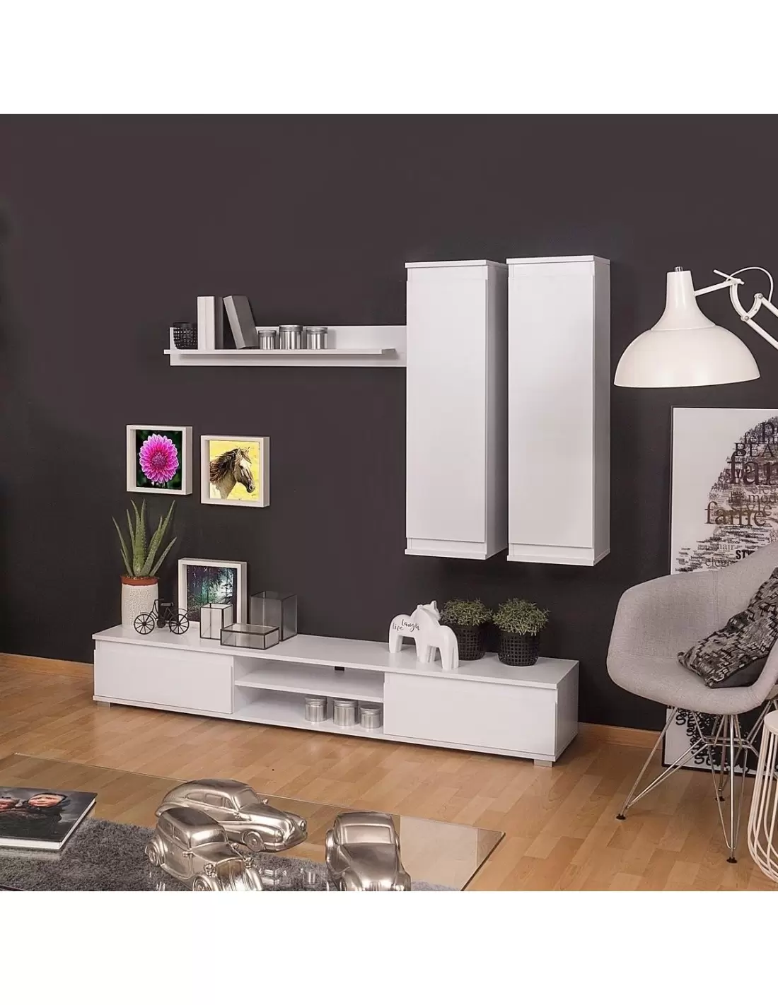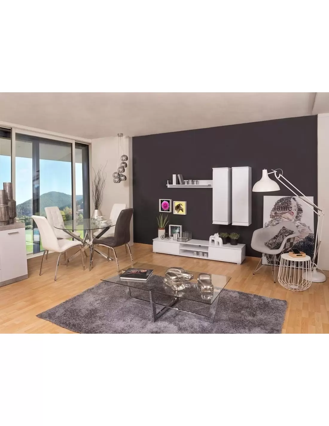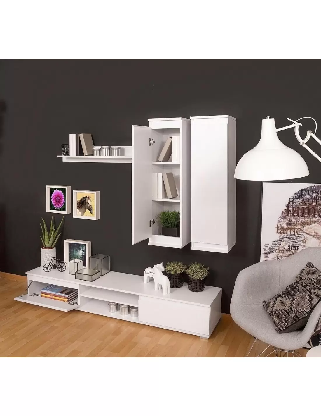 IBIZA MINI es un mueble de salón modular elegante y actual. Disfruta de un salón con estilo y sin problemas de espacio con esta solución de gran versatilidad y dimensiones reducidas.Compuesto por un mueble de tv, un mueble bajo con puerta y balda interior, un mueble alto con puerta y balda interior y una balda / librero de pared, IBIZA MINI está acabado...