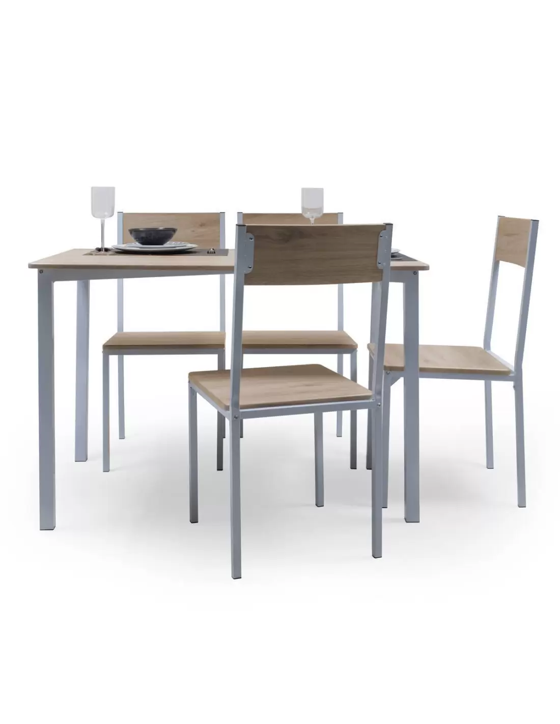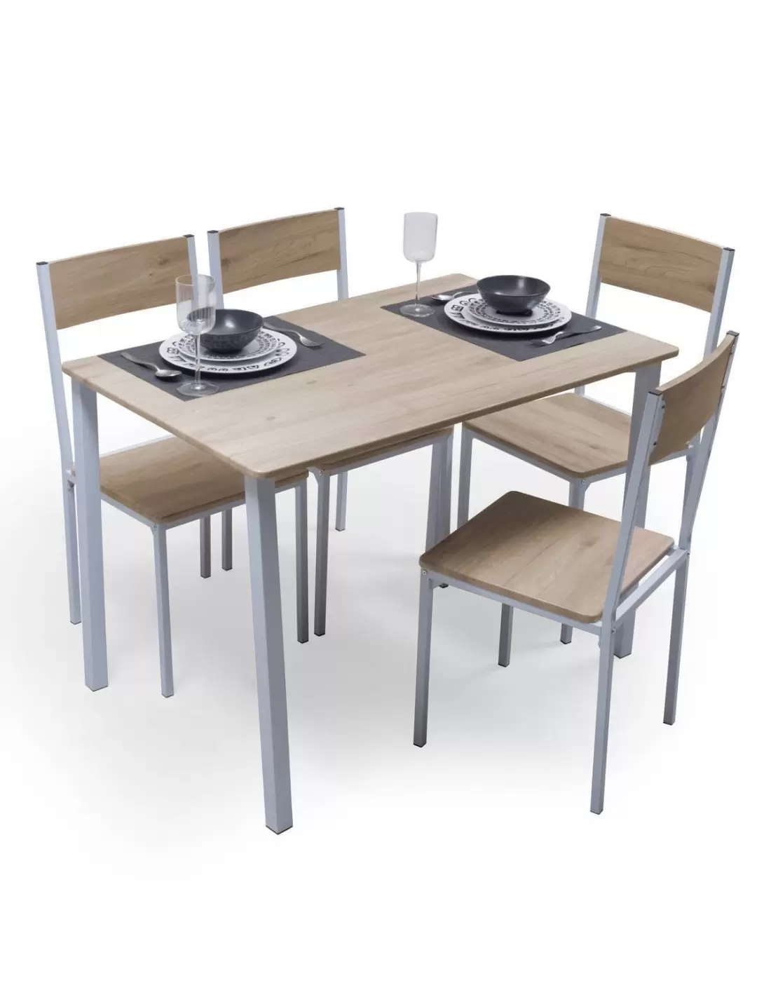 Conjunto de cocina KOLDO, mesa de 110x70 cm y 4 sillas, color roble y blanco