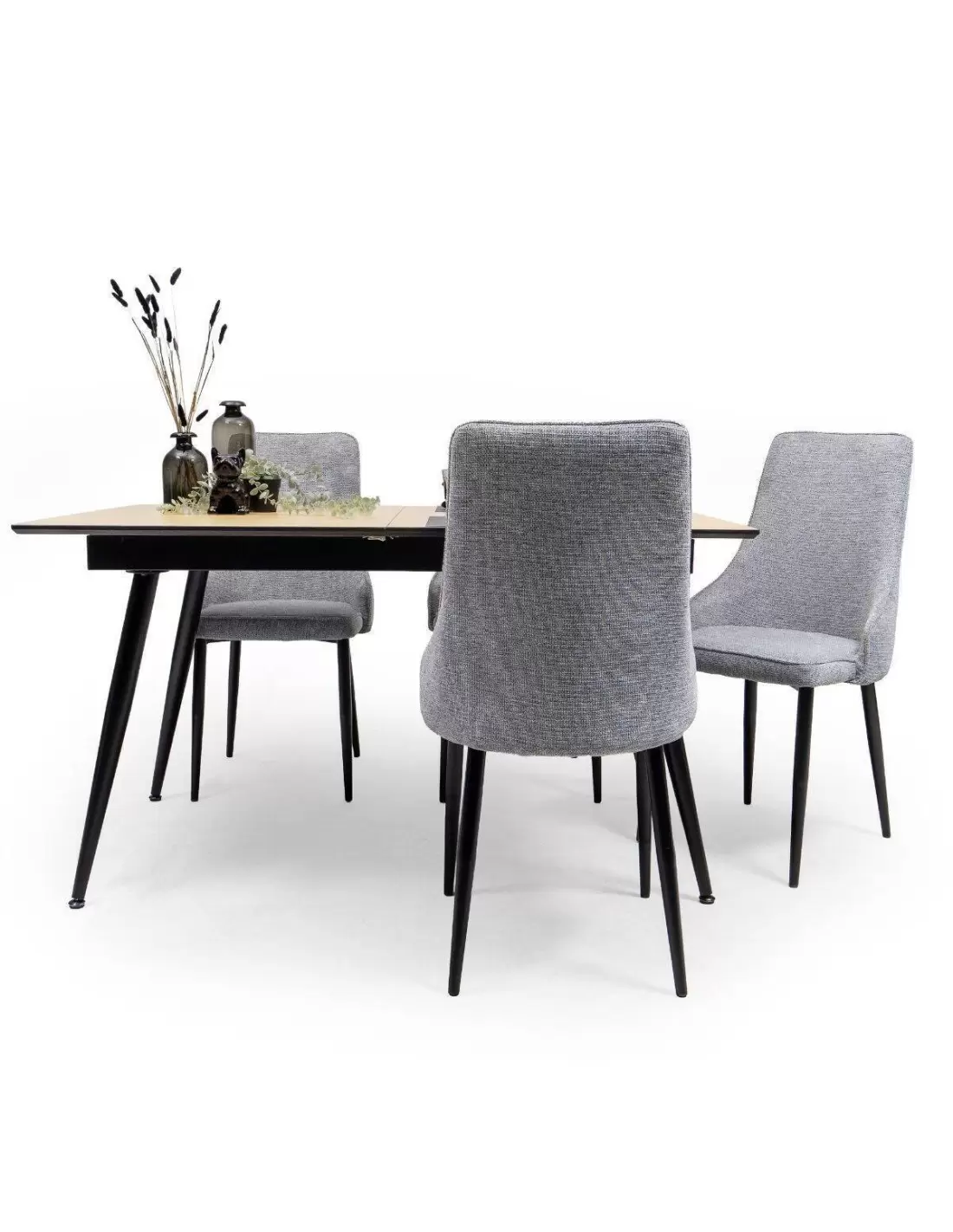 Diseño moderno, funcionalidad y comodidad para tu comedor Este elegante conjunto de comedor extensible KATIA/LUNA está pensado para quienes buscan un espacio versátil y sofisticado. La mesa con tapa cerámica alto brillo símil mármol blanco y patas metálicas negras combina perfectamente con las 4 sillas giratorias...