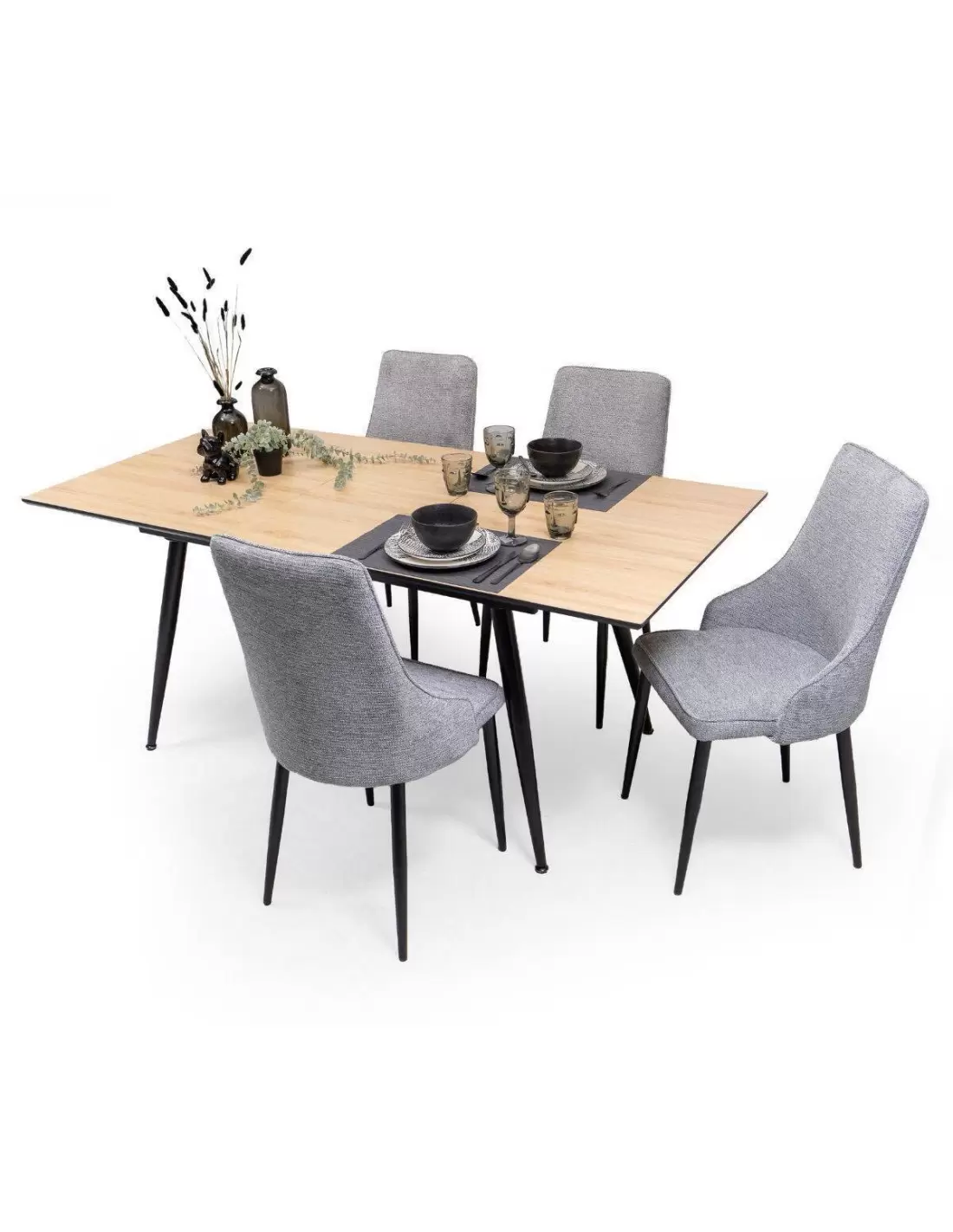 Conjunto de Comedor Extensible KATIA/LUNA con Tapa Cerámica Mármol Blanco + 4 Sillas...