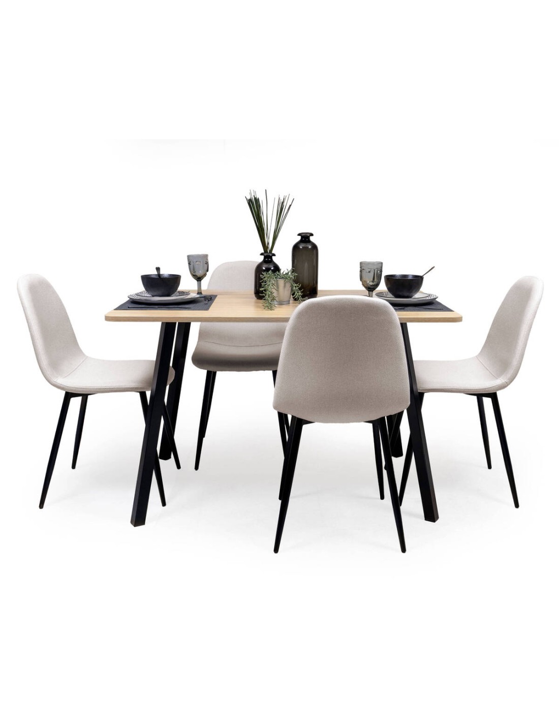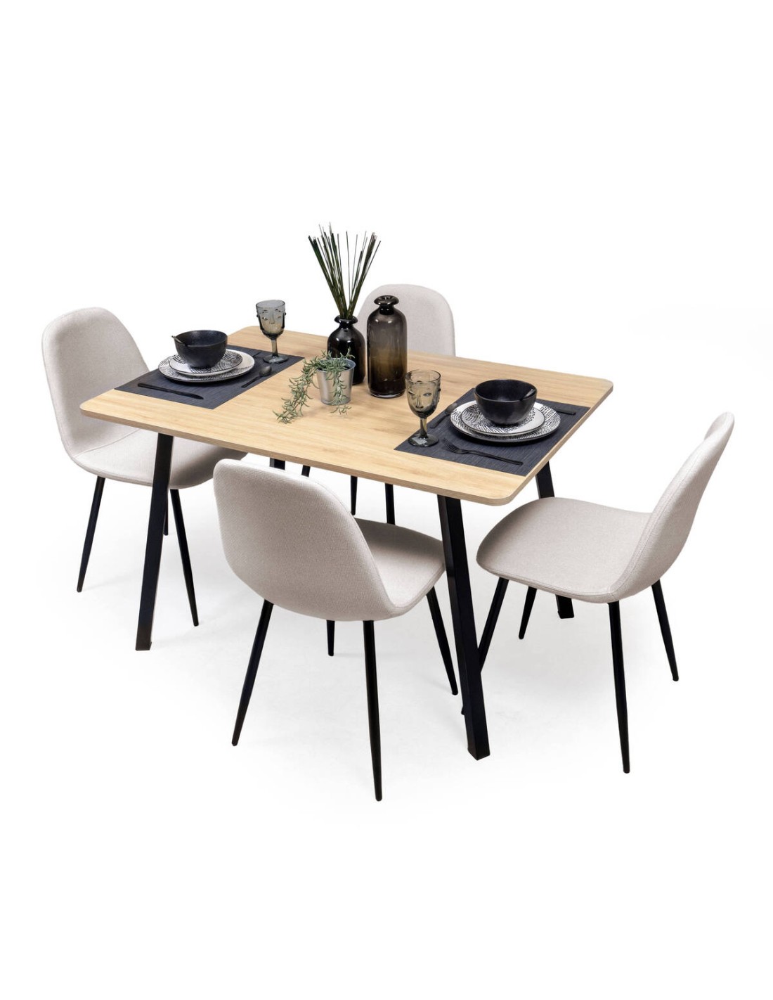 Conjunto Mesa comedor Fija NADIR + 4 Sillas Tapizadas beige LEIVA