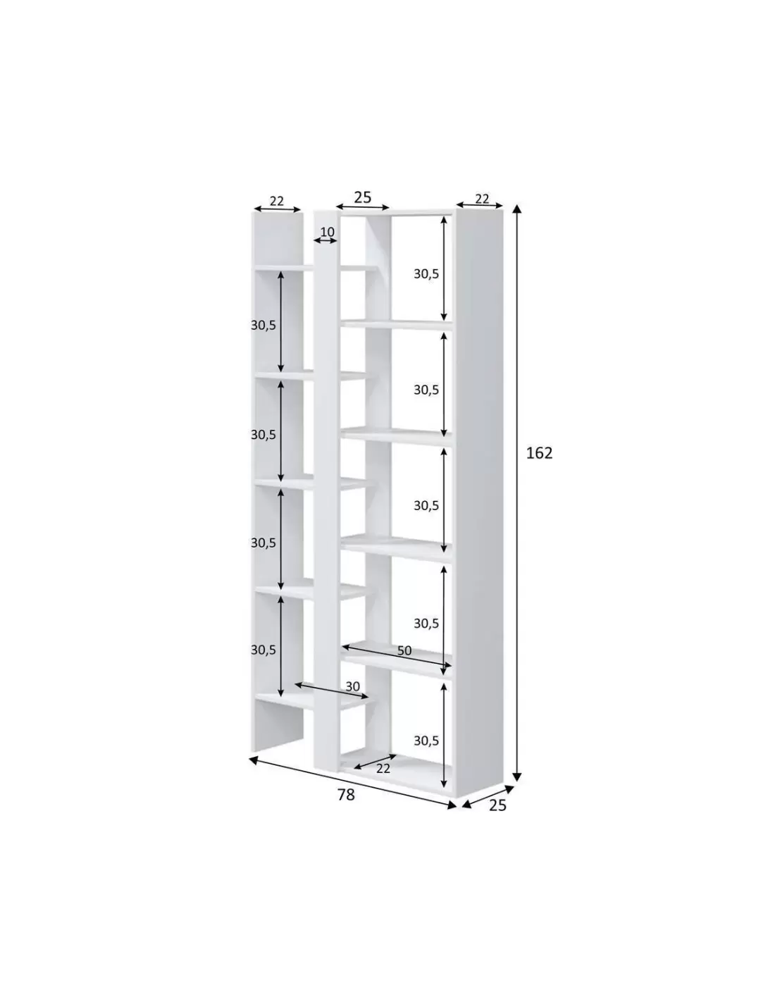 Estantería doble alta de diseño moderno MYKONOS tablero de partículas melaminizado color blanco artik 78x25x162 cm