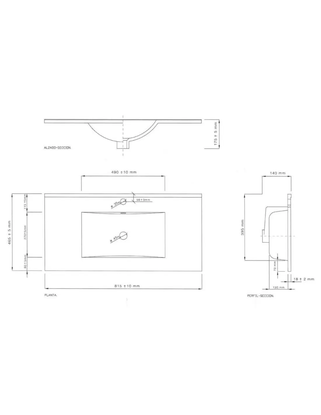 Lavabo de polimetilmetacrilato PMMA de 80x45 cm color blanco.OBSERVACIONES:· Grifería, sifón y válvula NO INCLUIDOS.