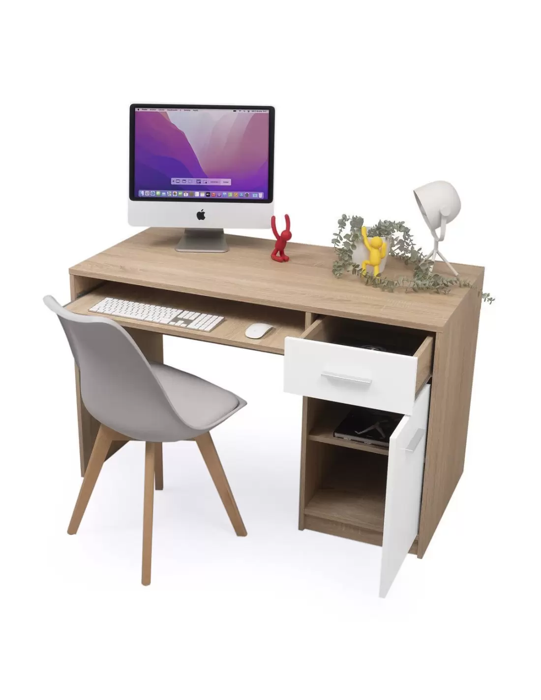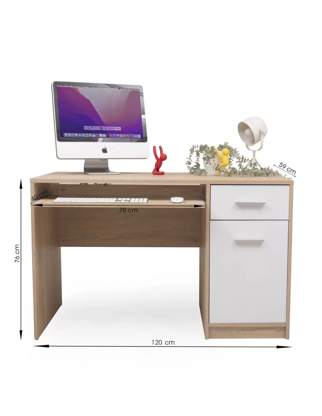 Mesa escritorio KENTO tablero de partículas melaminizado color cambrián y blanco 120x59x76 cm