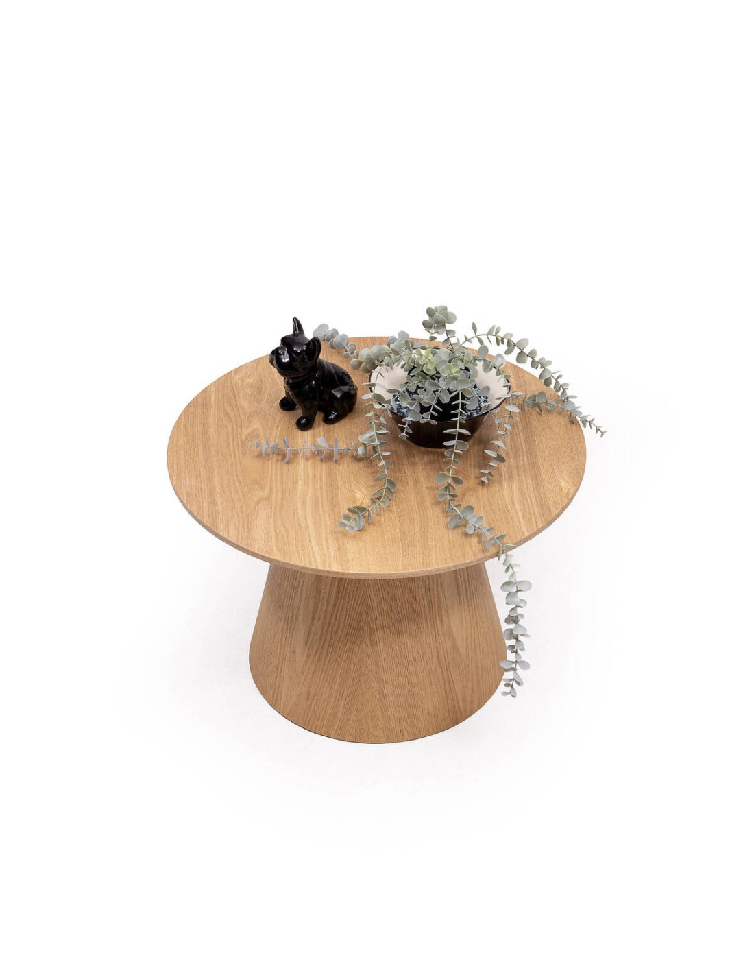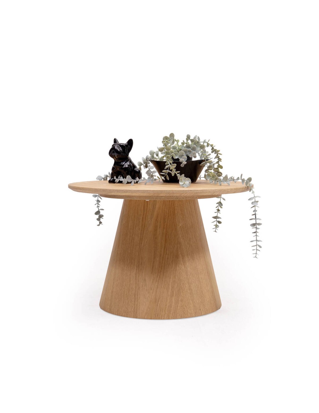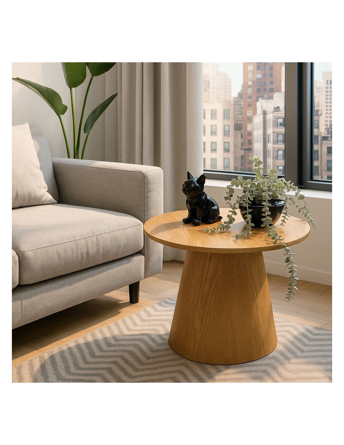 Su estructura robusta con pie central moderno le otorga estabilidad sin renunciar a un aspecto minimalista y acogedor. Perfecta como mesa de centro en el salón, mesa auxiliar junto al sofá o incluso en un rincón de lectura, esta pieza se adapta con versatilidad a distintos ambientes.
