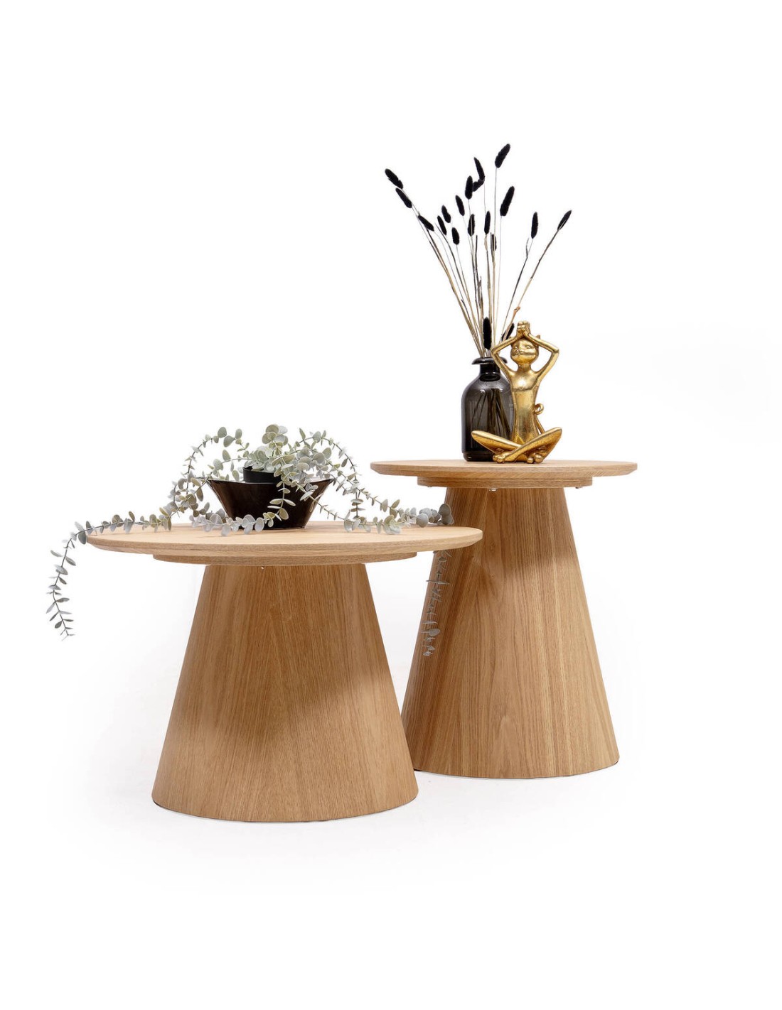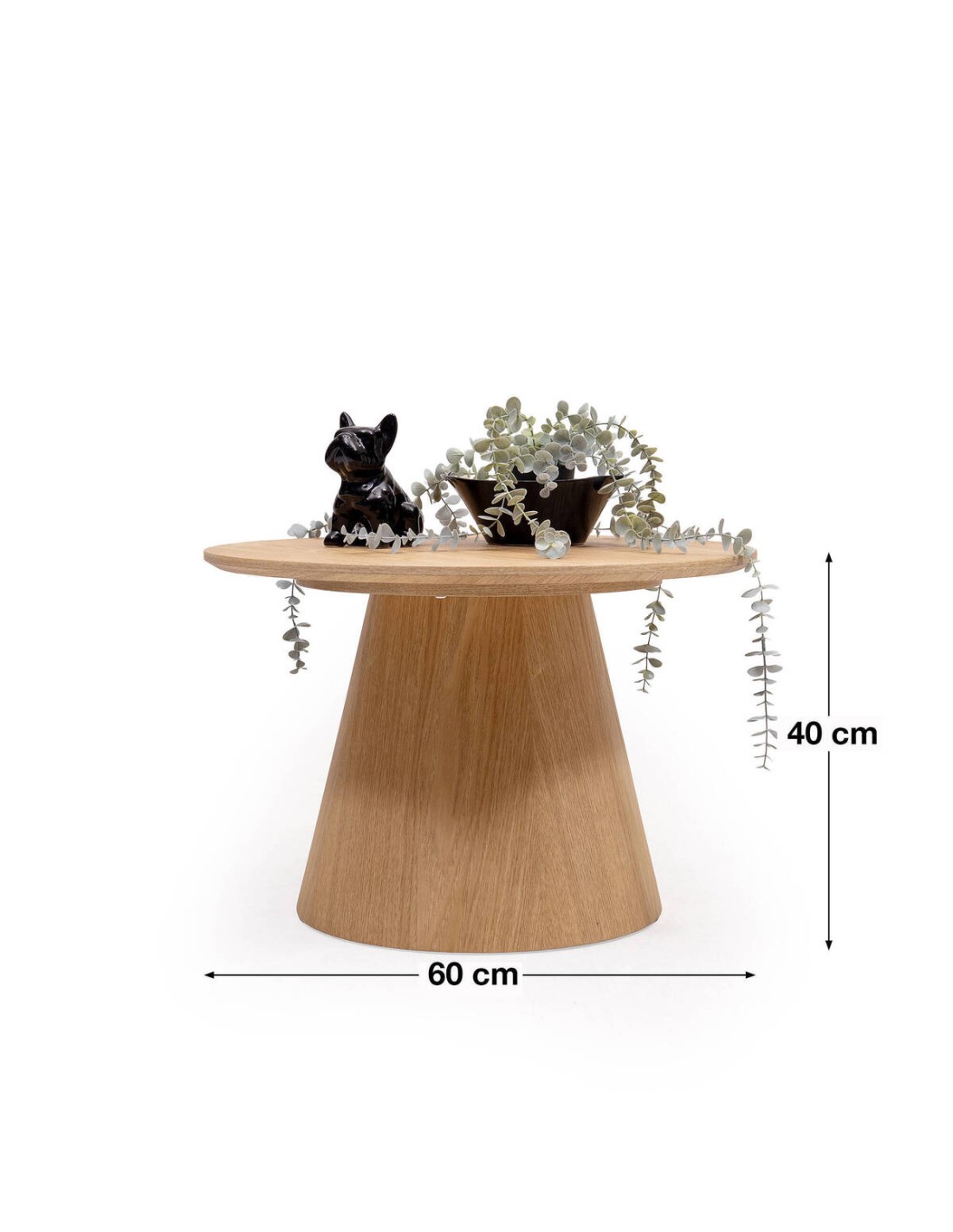 La mesa auxiliar redonda de 60 cm de diámetro y 40 cm de altura es el complemento ideal para tu salón. Con su diseño en chapa natural de fresno y su estilo nórdico y escandinavo, aporta calidez, ligereza visual y una elegancia atemporal.
