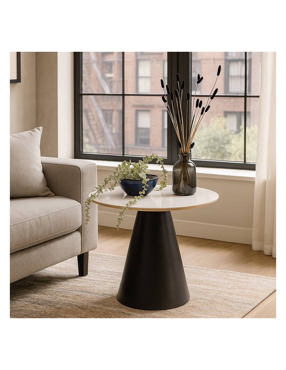 Lamesa auxiliar redonda Lúmica de estilo Minimal Soft es la combinación perfecta entre diseño contemporáneo y materiales exclusivos. La mesa de 50 cm de diámetro y 47 cm de altura , ofrece equilibrio visual y versatilidad.