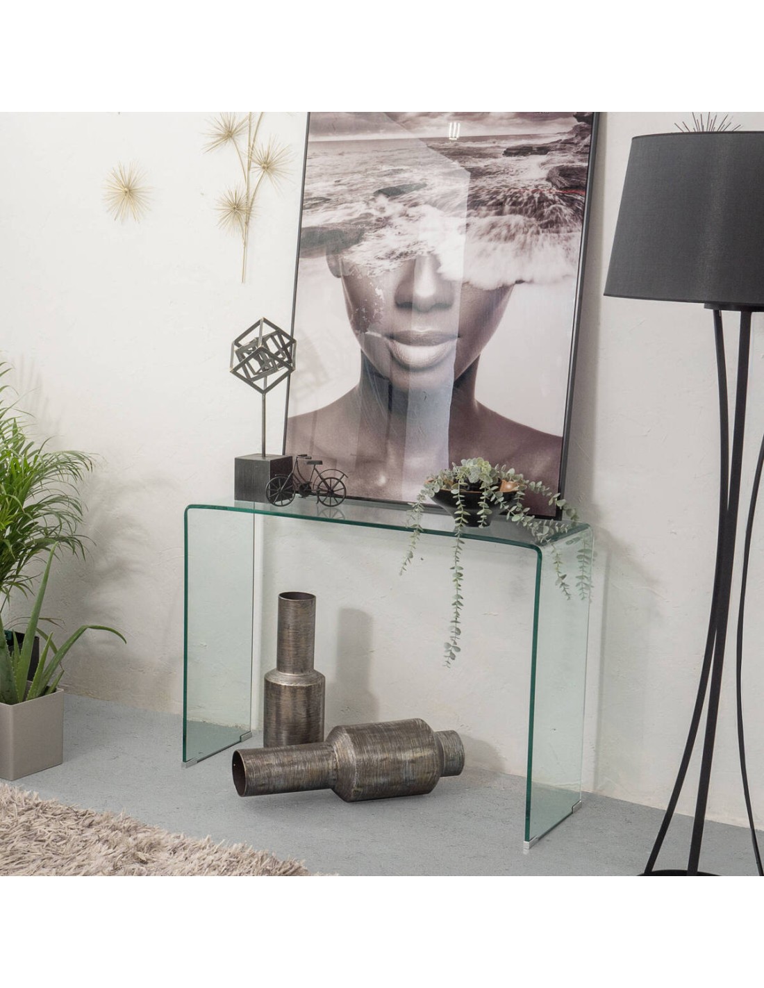 Consola de estilo country que combina la calidez de la madera de abeto con un acabado anogalado y la resistencia de sus patas metálicas en color negro. Este mueble práctico y elegante cuenta con dos cajones equipados con tiradores de anilla metálicos envejecidos, perfectos para el almacenamiento de pequeños...