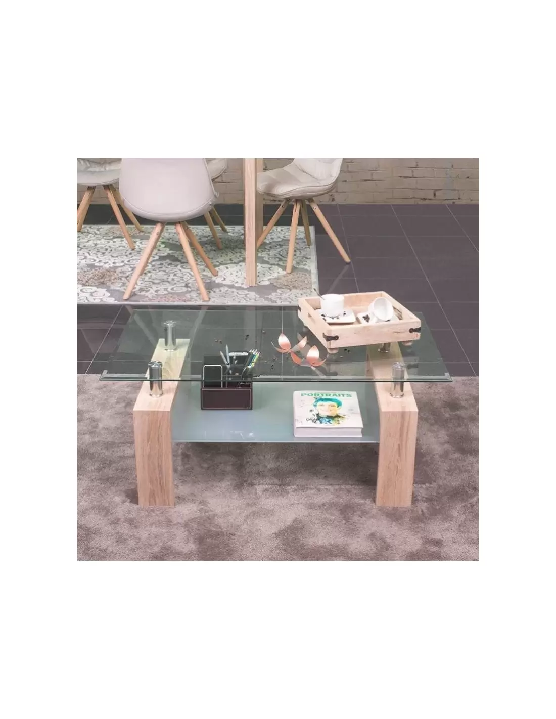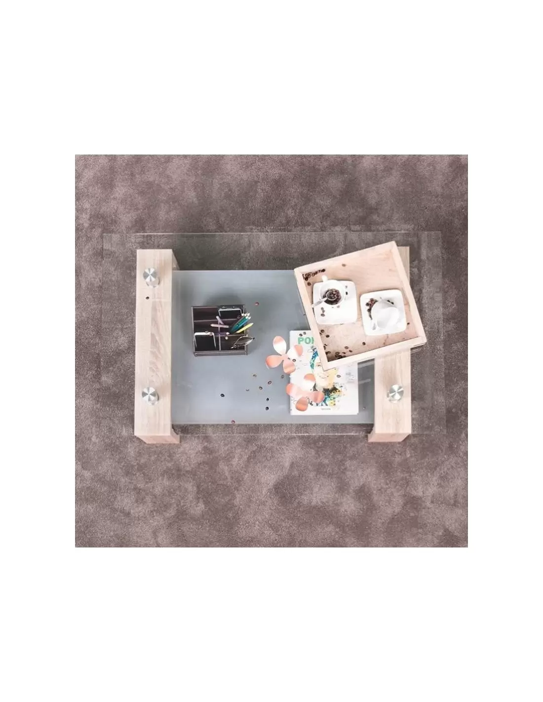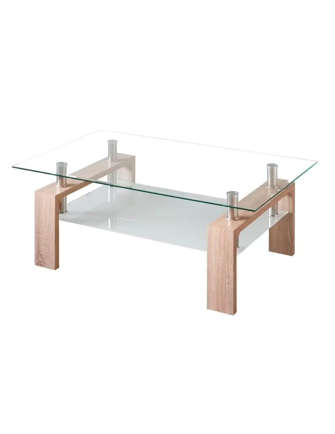 Mesa de centro KENIA tapa y revistero de cristal y pies de mdf