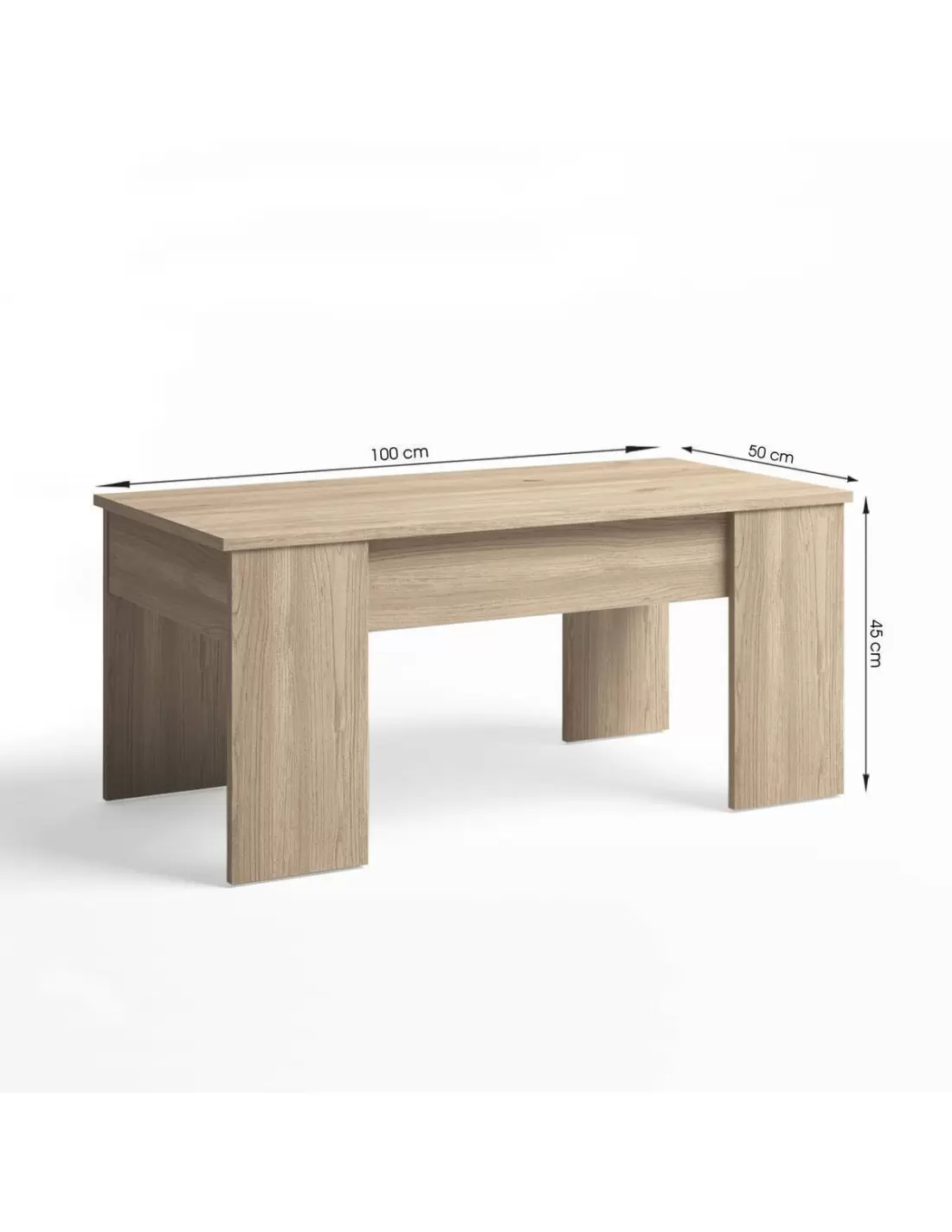 Mesa de centro elevable LOW tablero de partículas melaminizado color blanco nordic o madera naturale 100x50x45 cm