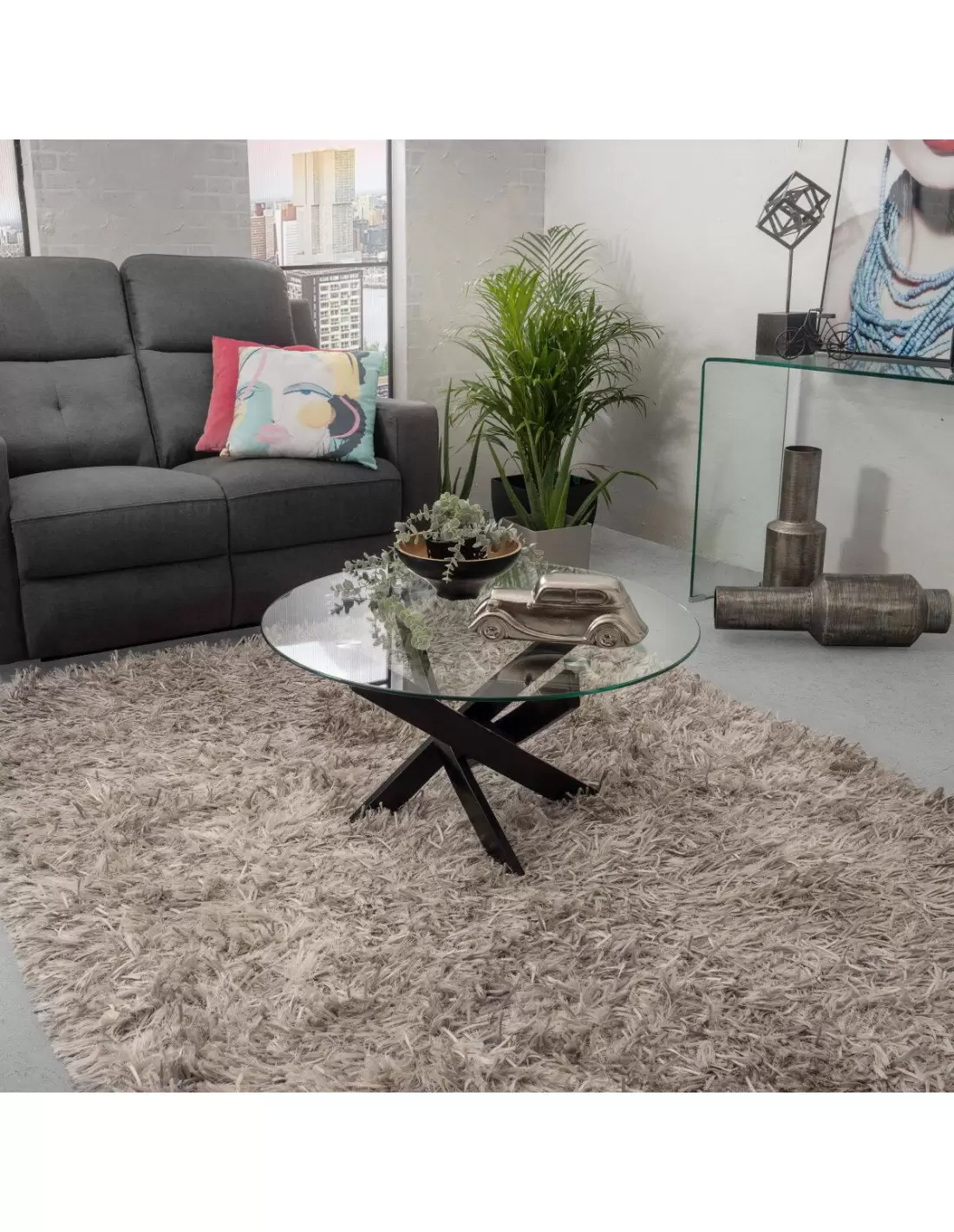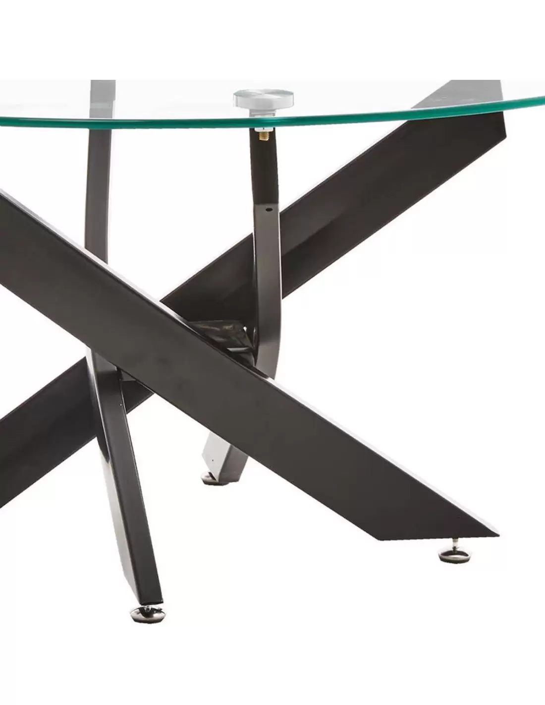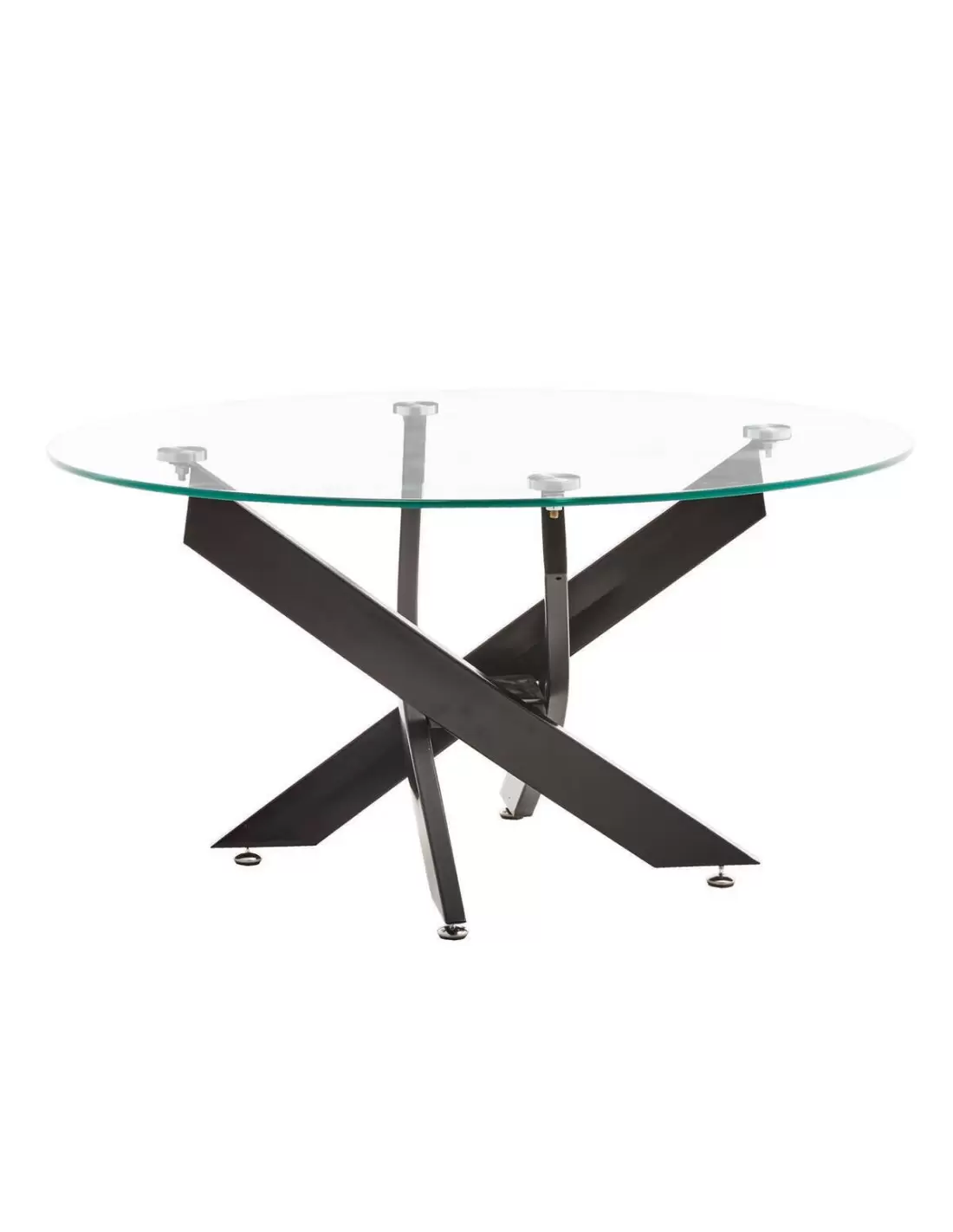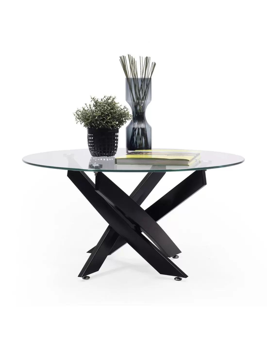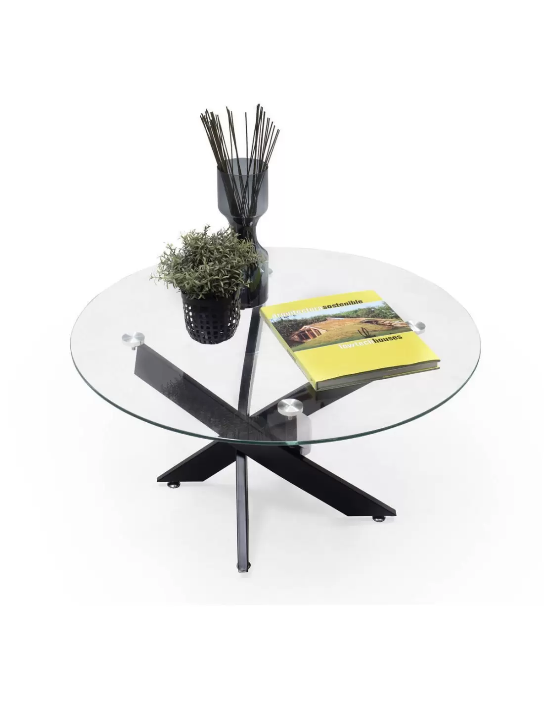 Mesa de centro redonda BLACK DALILA cristal templado y base metálica color negro de 80x40 cm