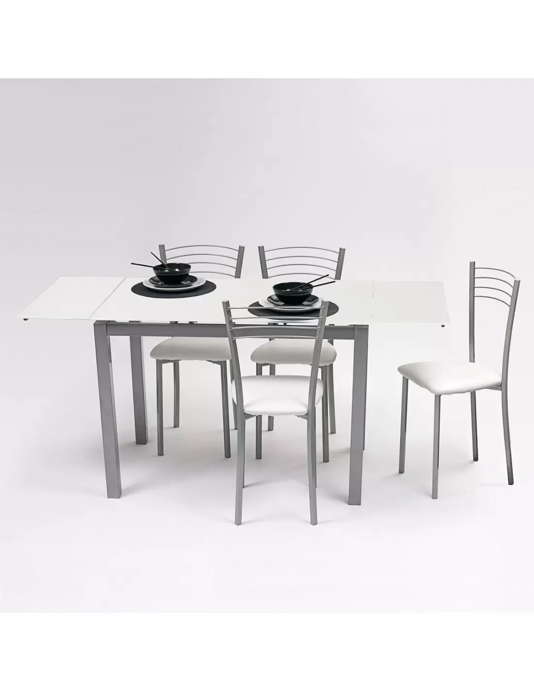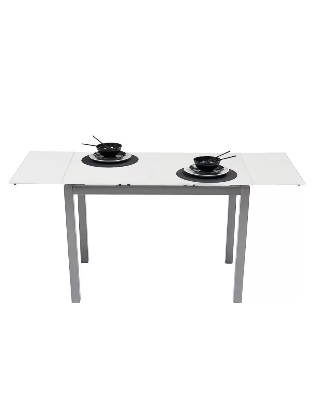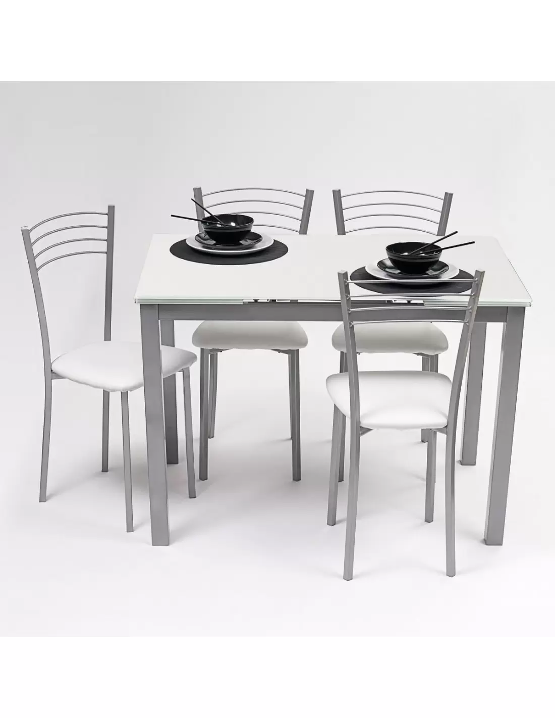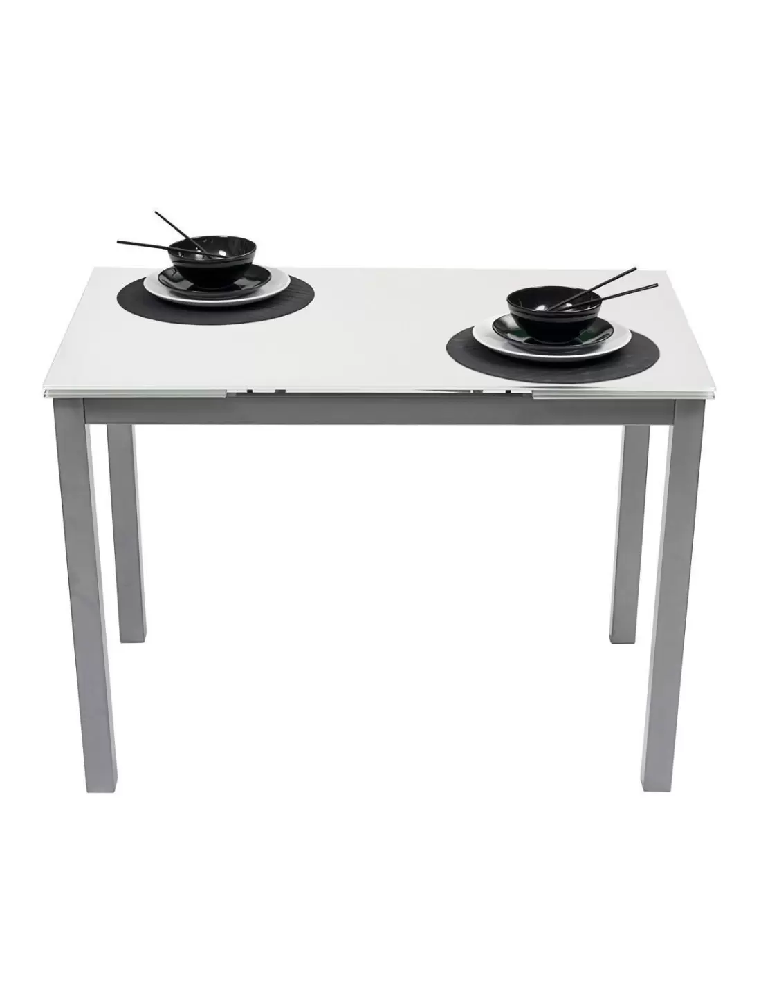Mesa de cocina extensible PARIS ÓPTICO sobre de cristal blanco PURO y estructura en metal gris 110/170x70cm