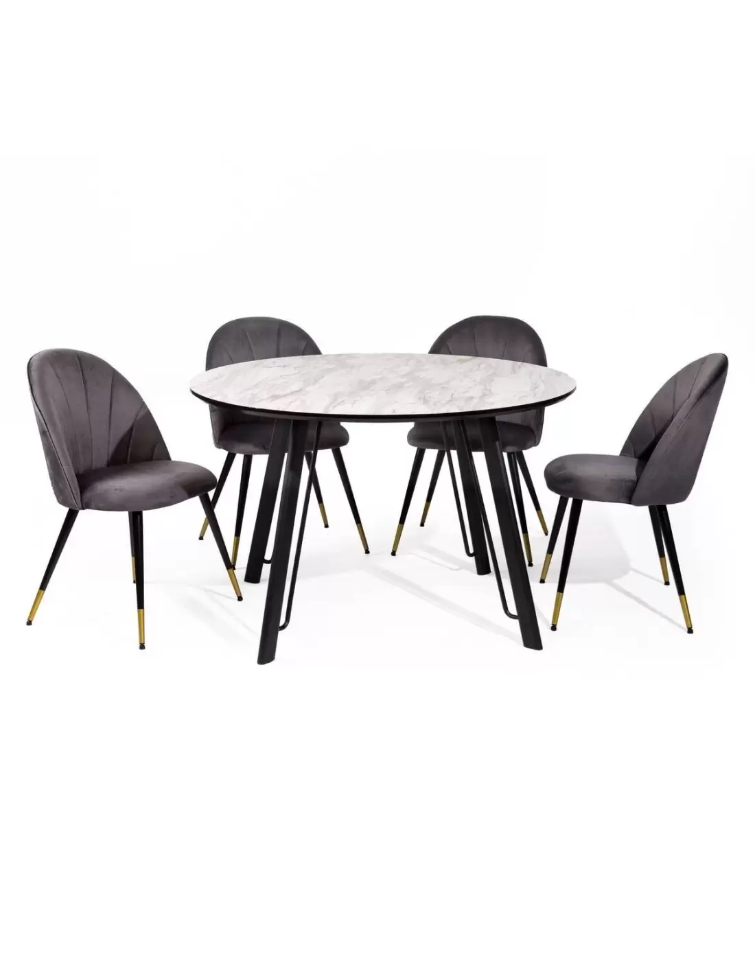 Mesa de cocina o comedor redonda TOWER VINTAGE 90 sobre de cristal de 90 cm y patas de...