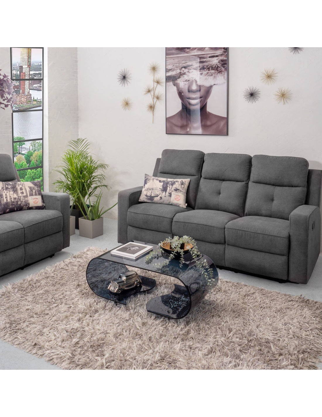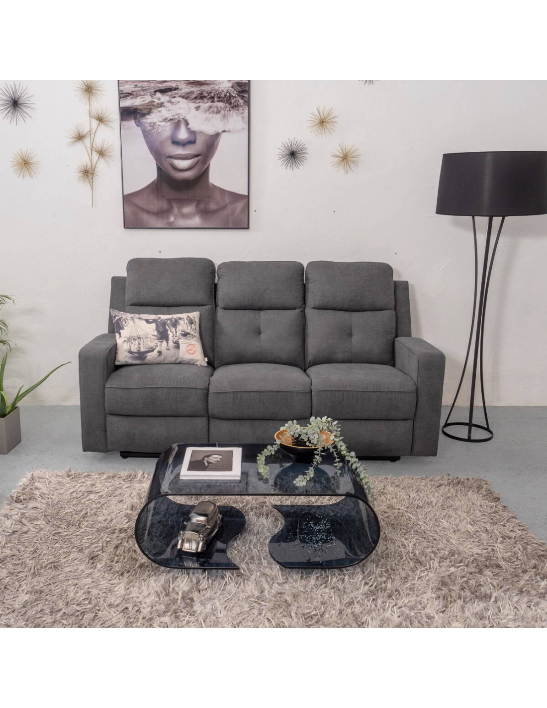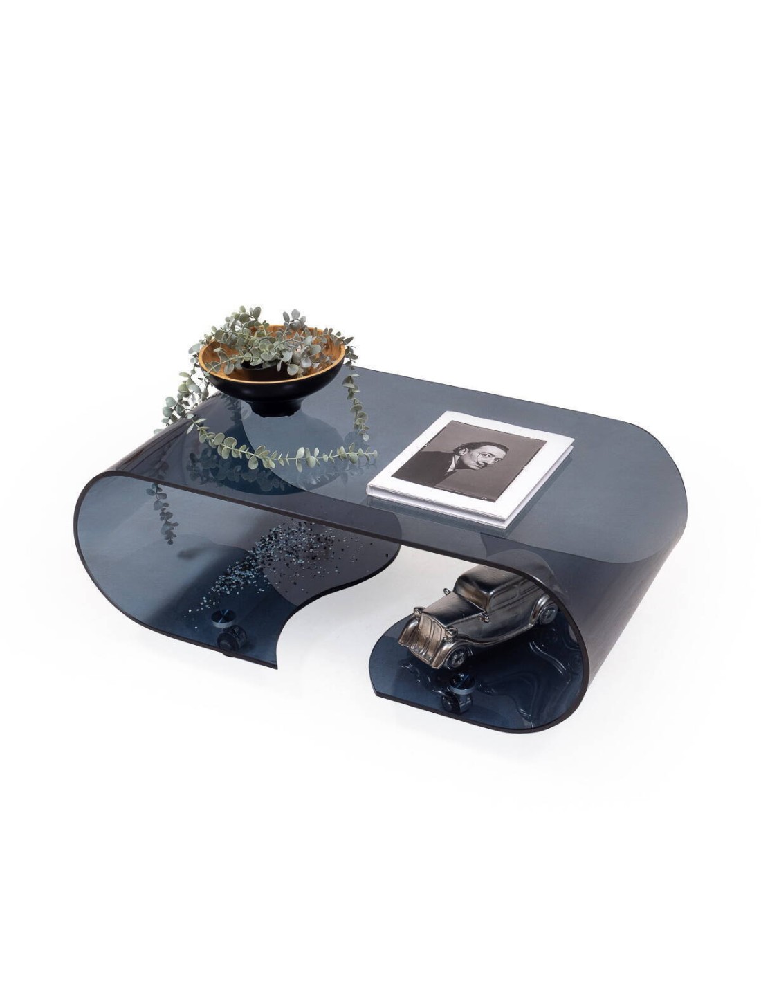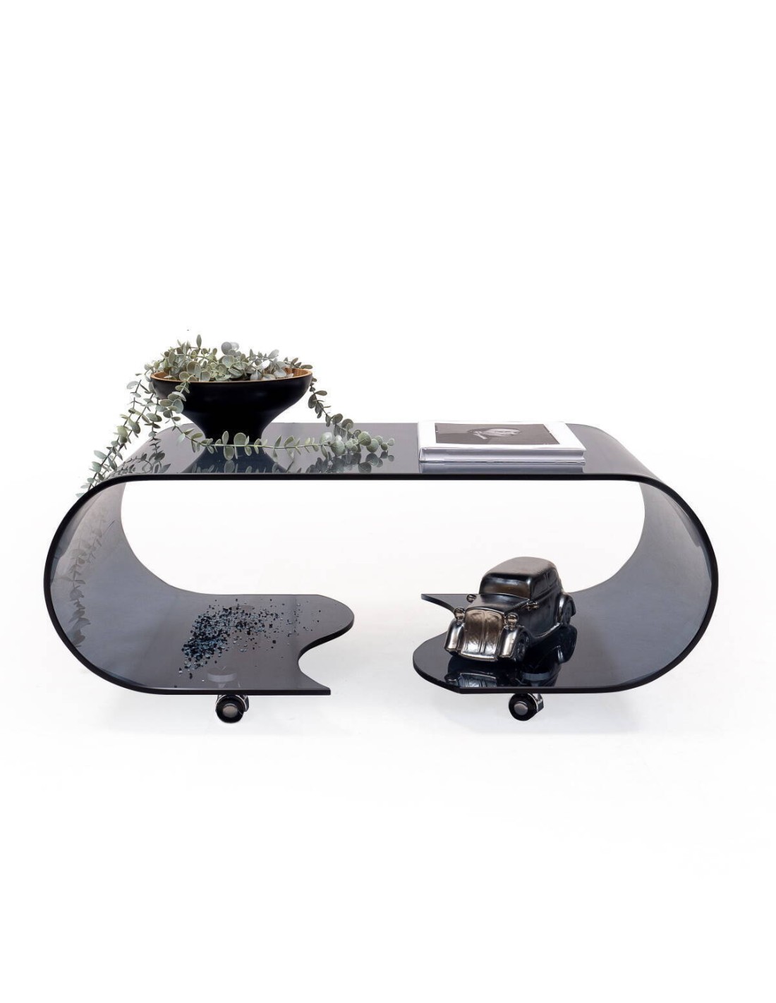 Mesa de centro con ruedas y cristal curvado de una pieza COFFEE SMOKE GRIS de 90x50x36,5 cm