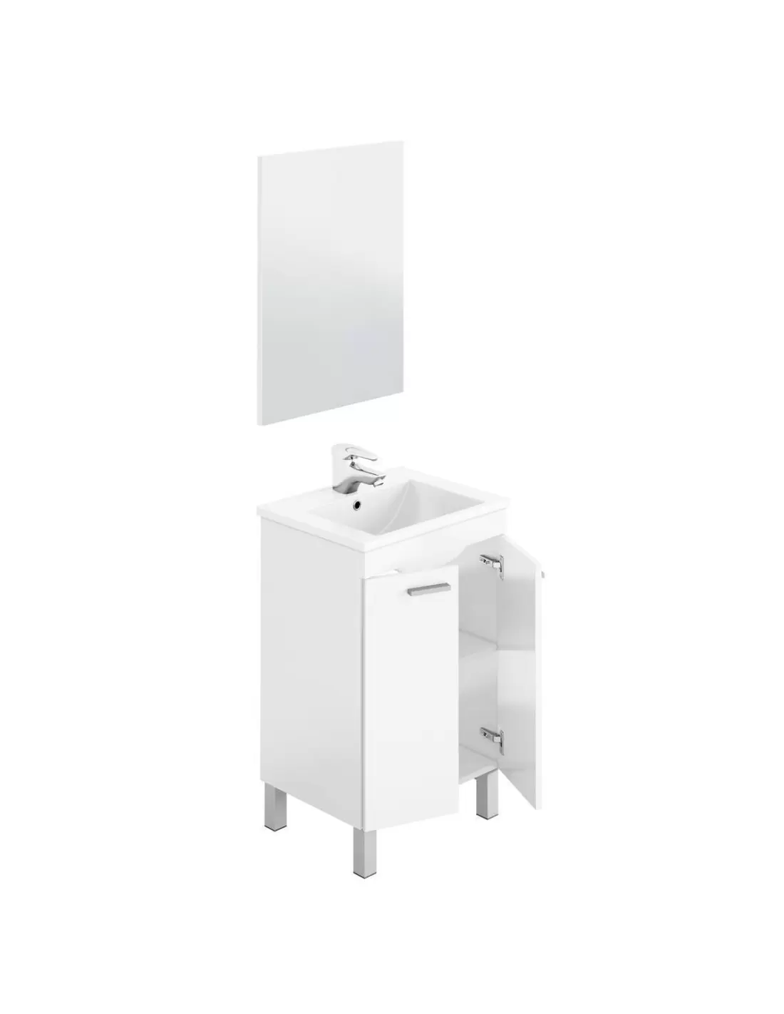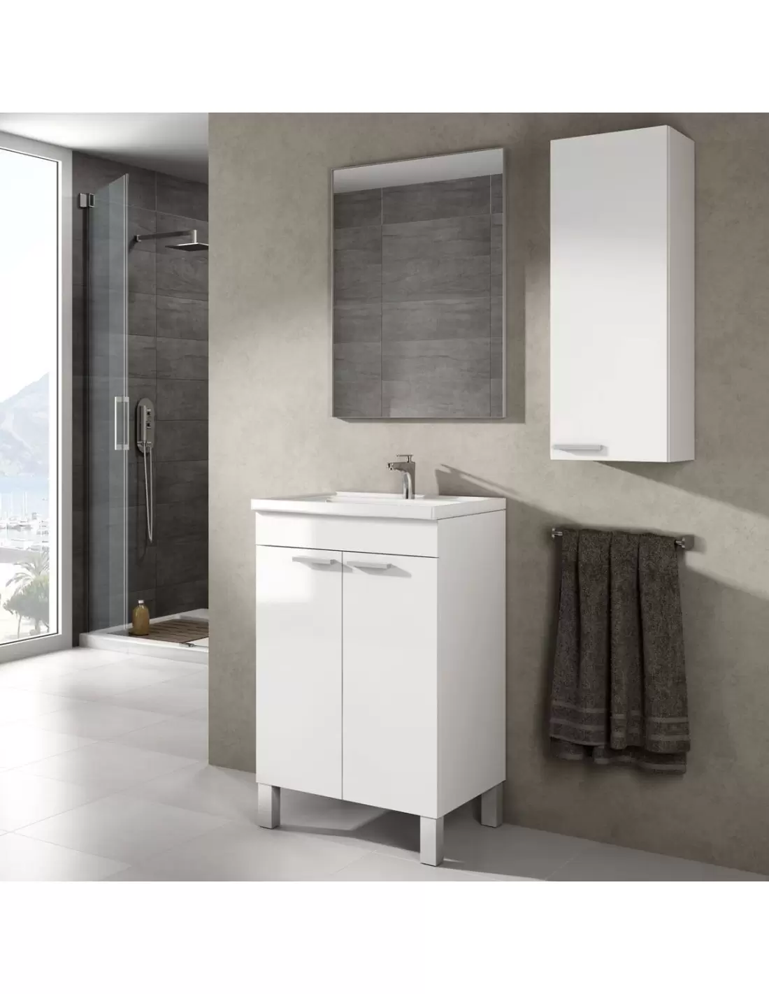 Mueble de baño pequeño de 2 puertas + espejo KONCEPT color blanco brillo de 50x40x 80 cm (LAVABO NO INCLUIDO)