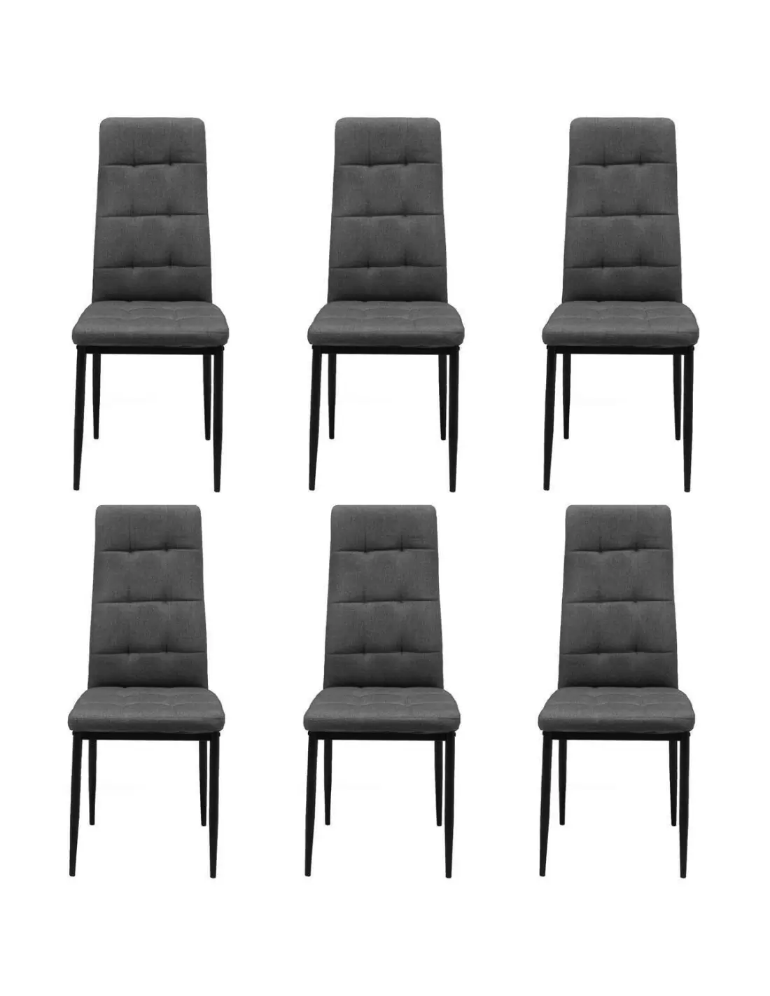 Pack de 6 sillas de comedor ZUNI tapizadas en tela gris oscuro y patas metálicas en negro