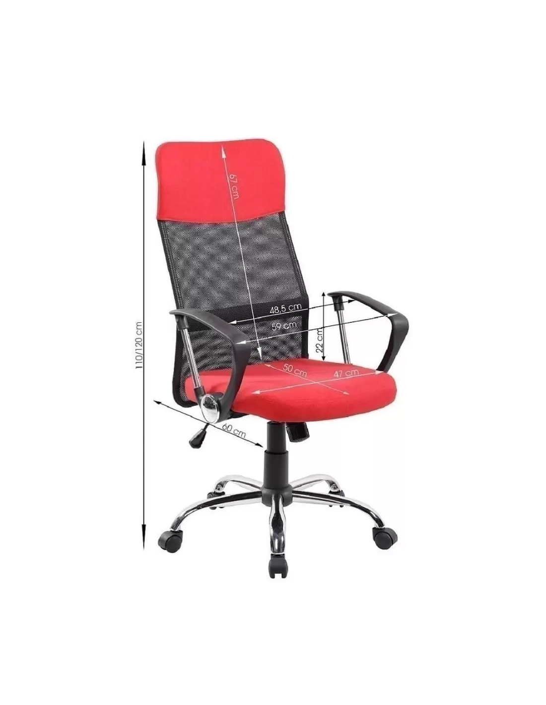 LEIVA es una silla de oficina o escritorio tapizada en tela con dos colores a elegir, azul o rojo, y tejido 3D, con un respaldo alto y ergonómico con reposacabezas diseñado para tu comodidad.