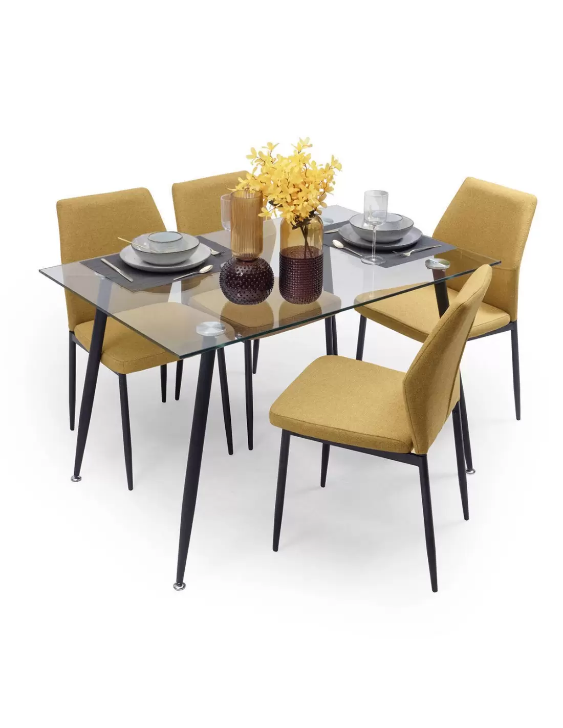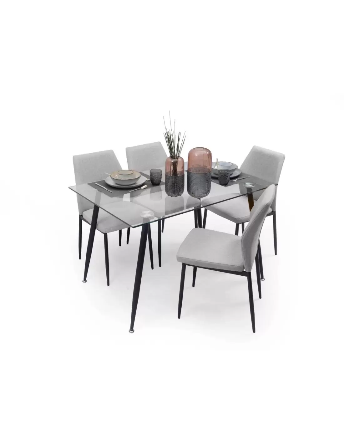 Conjunto de comedor CAIRO 120 BAY mesa cristal de 120 cm y 4 sillas BAY tapizadas