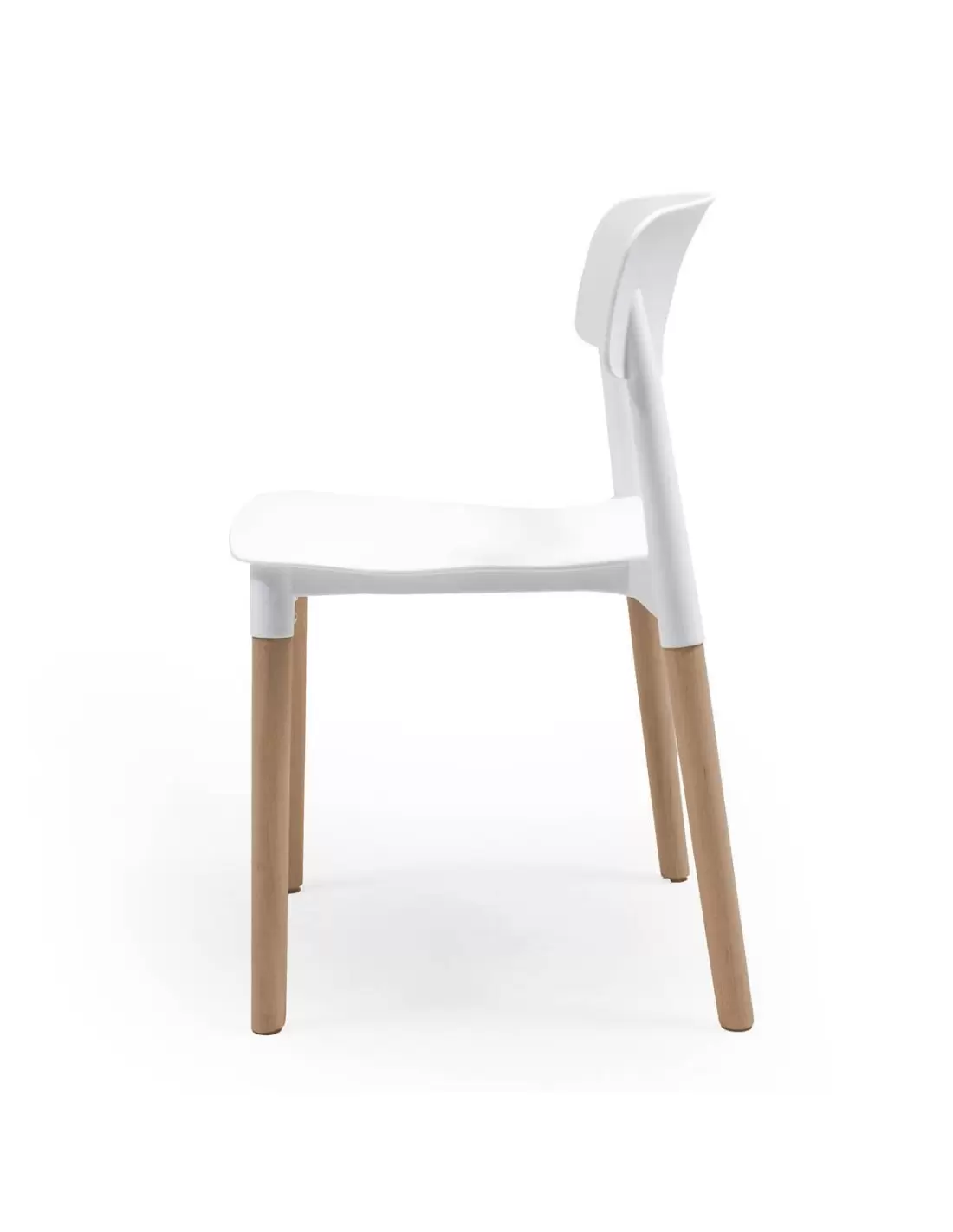 Las 4 sillas CALAS están creadas con un gusto muy especial, con un diseño fresco y práctico con aires nórdicos. Tienen un original asiento de polipropileno de una pieza en color blanco y cuatro patas de madera de haya.