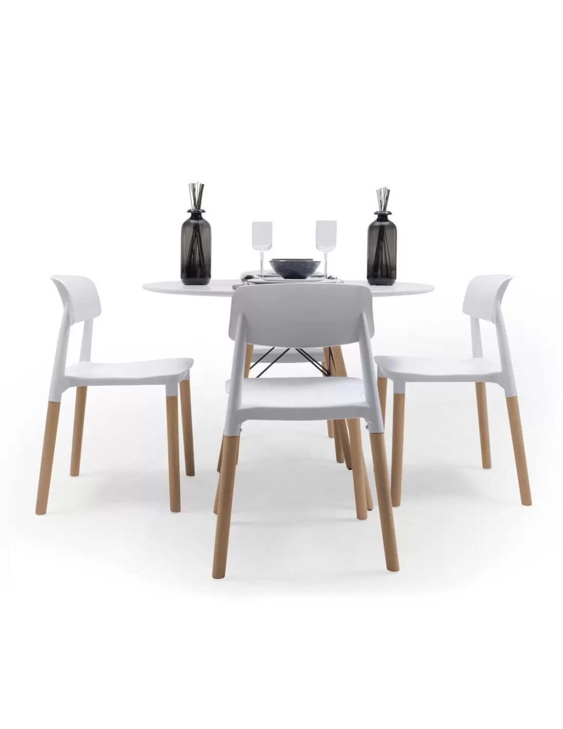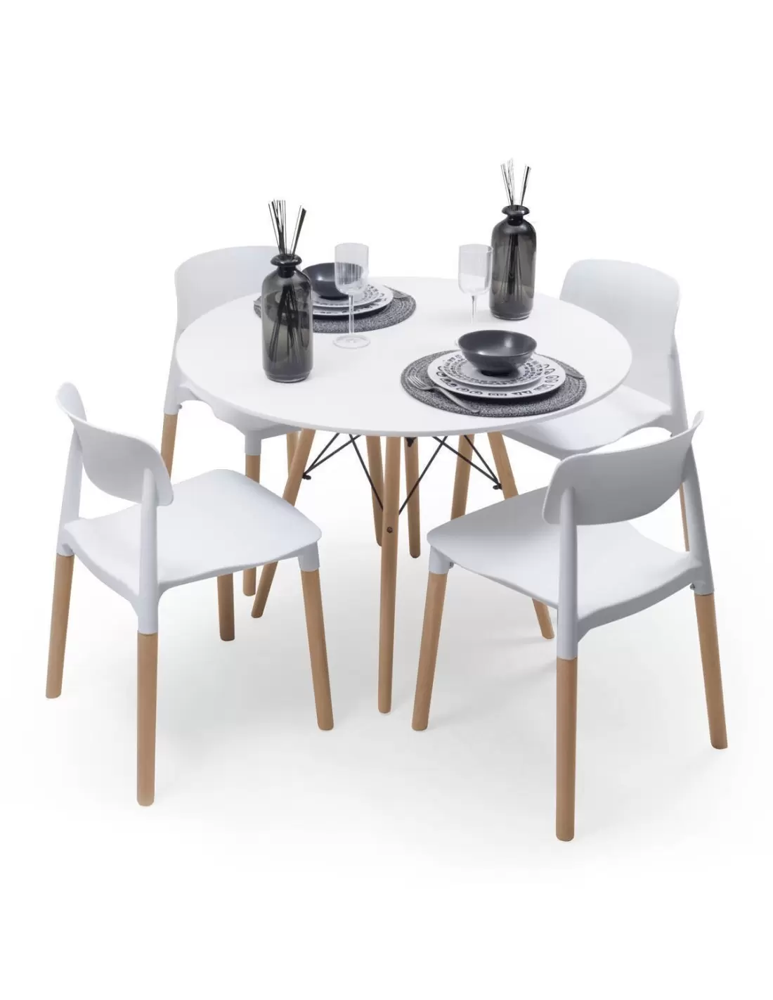 Conjunto de comedor CALAS TOWER WHITE 100, mesa redonda de 100 cm, 4 sillas de diseño nórdico