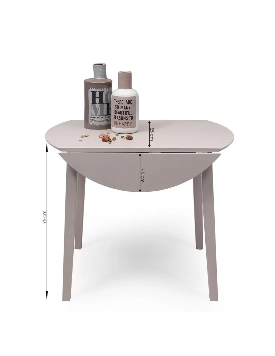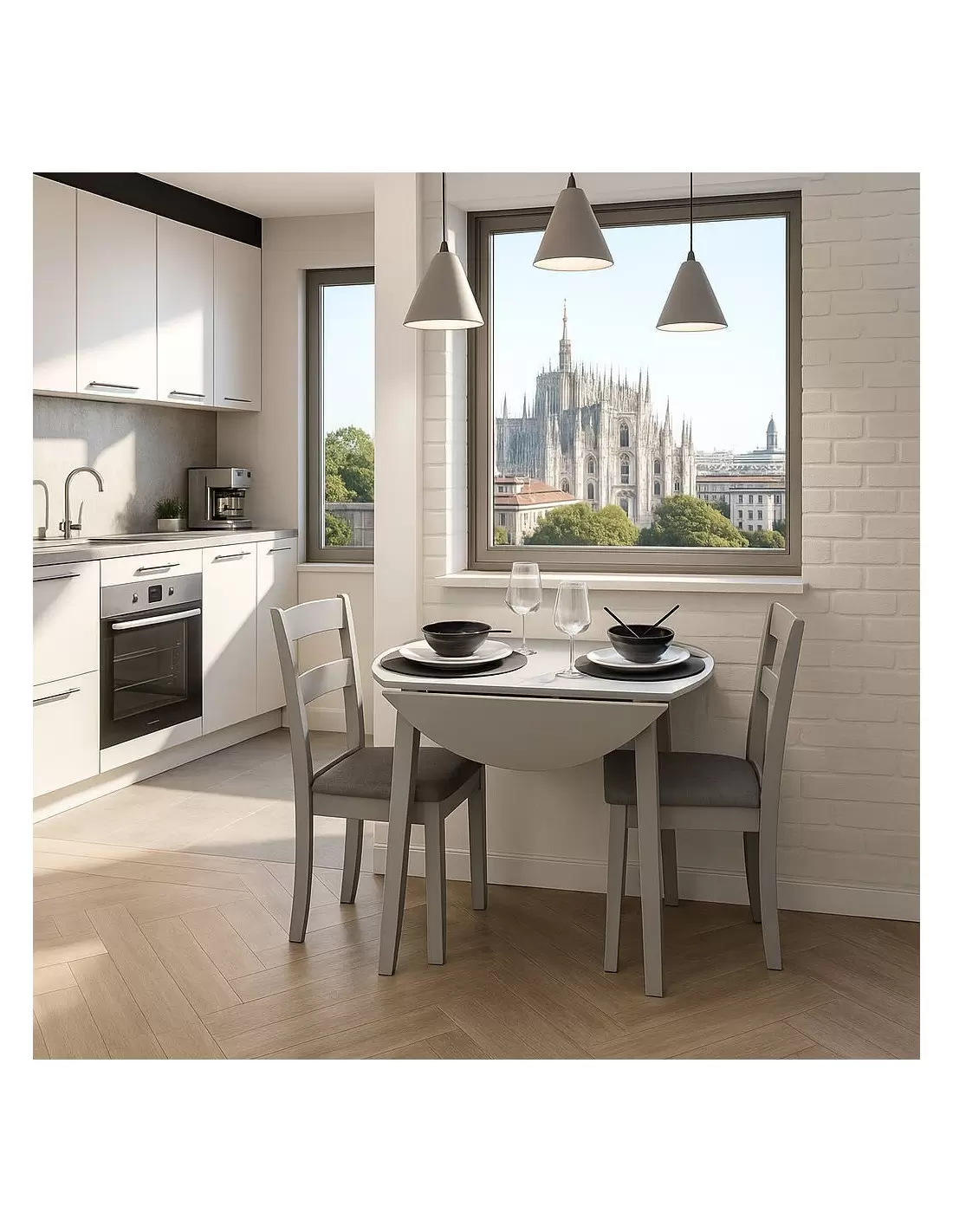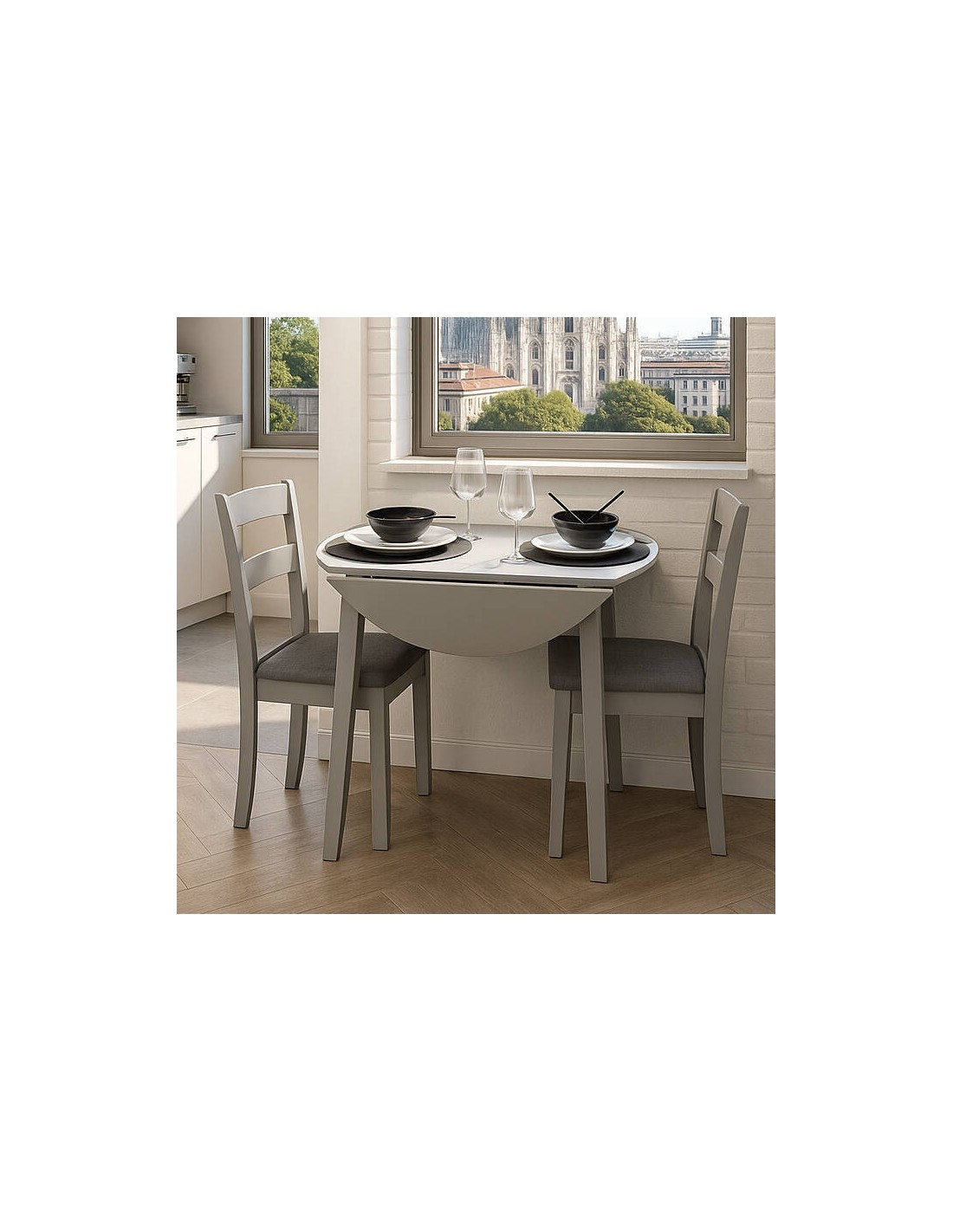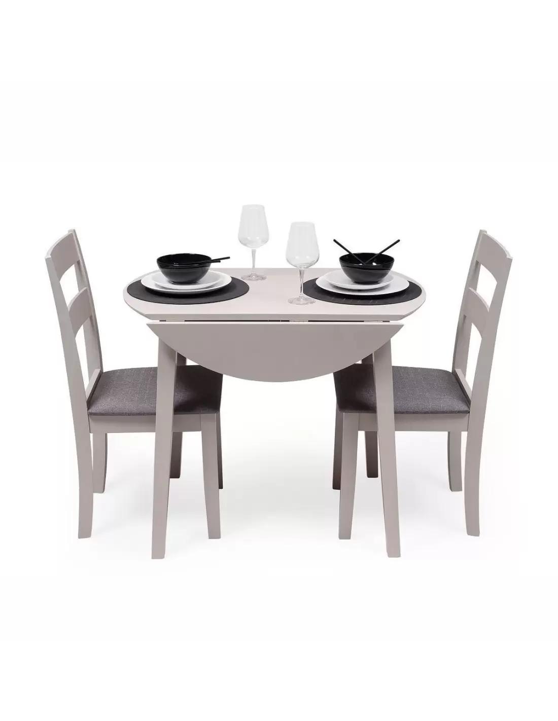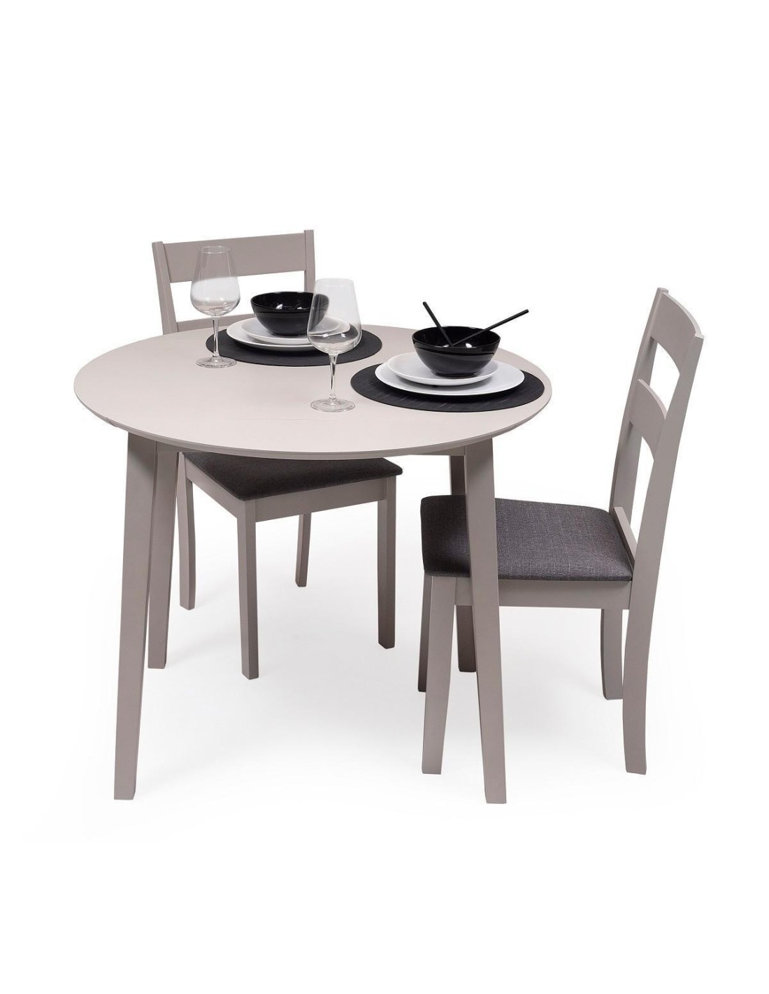 Conjunto de comedor DALLAS GREY mesa de comedor redonda 90x55 cm. Madera lacada extensible y 2 sillas de comedor