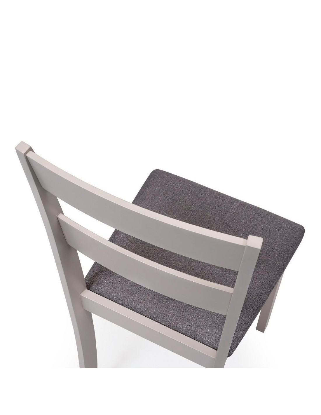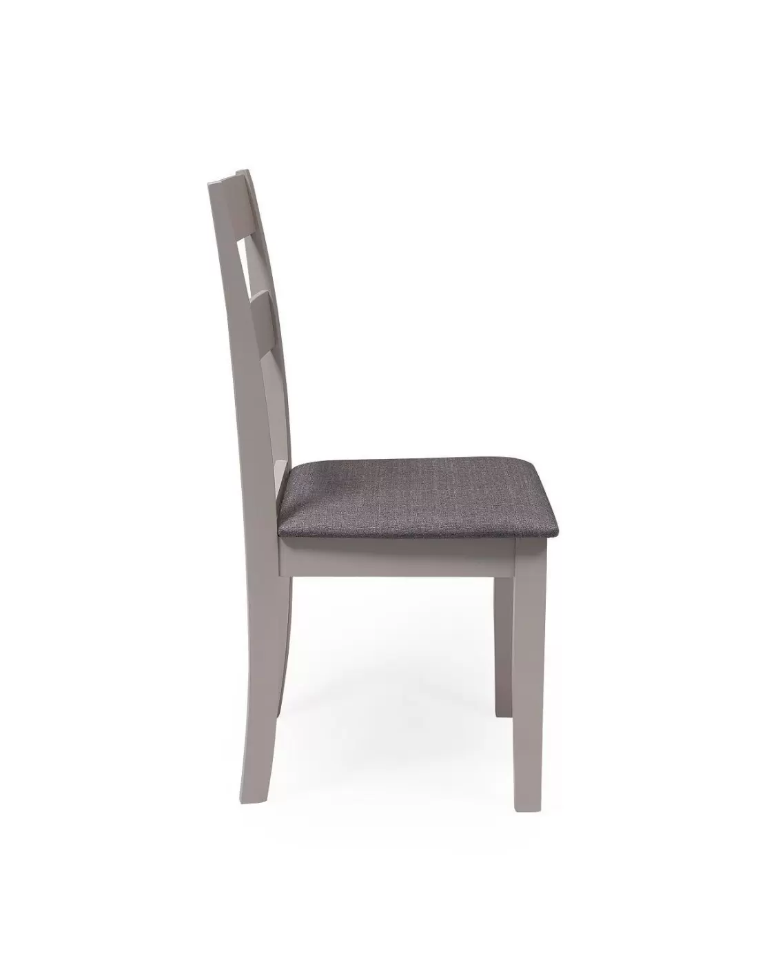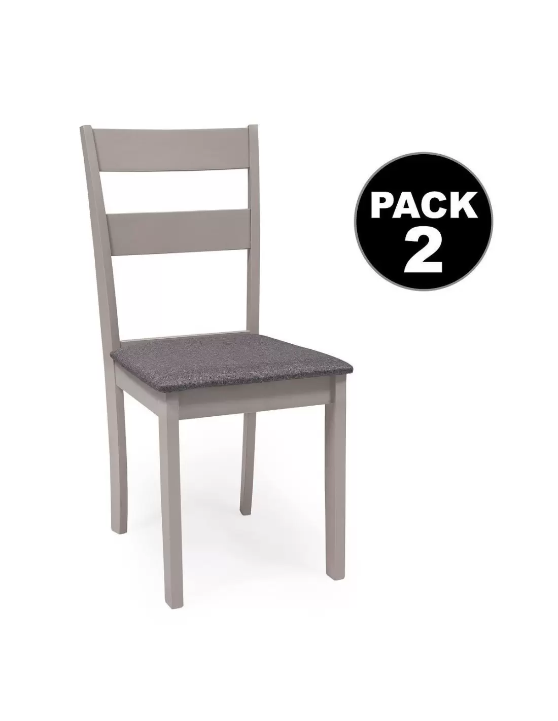 El conjunto DALLAS GREY está formado por una mesa extensible redonda, de madera lacada en gris, adaptable a tu espacio y tus necesidades, y dos sillas de comedor con estructura de madera lacada en gris y asiento acolchado tapizado en tela color gris oscuro.