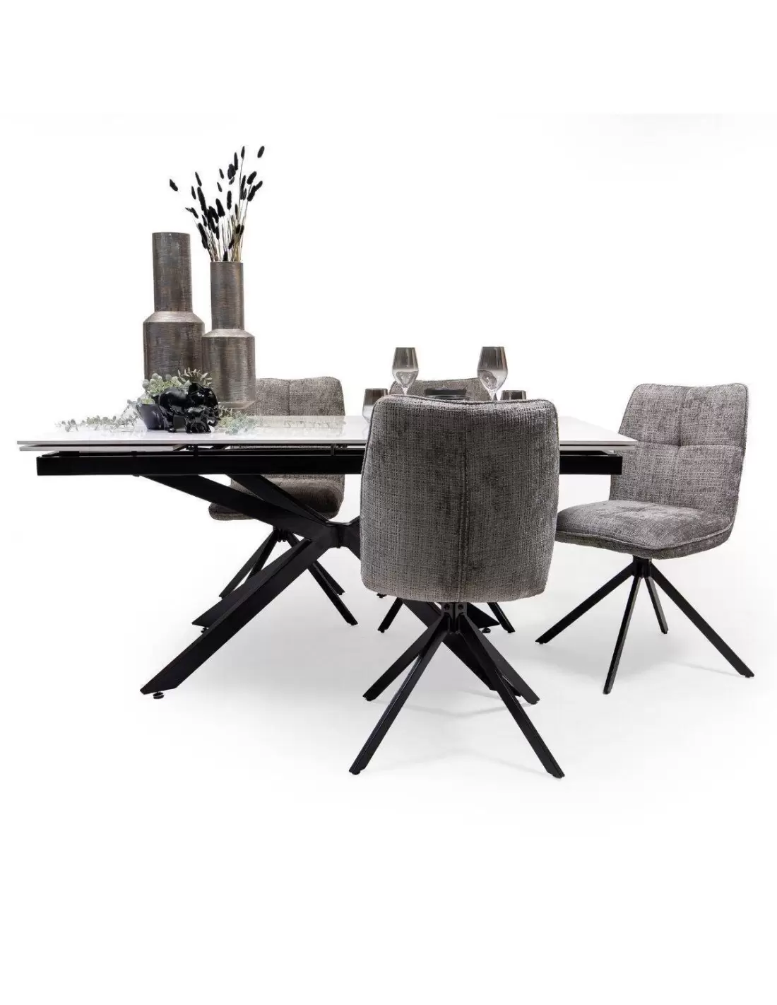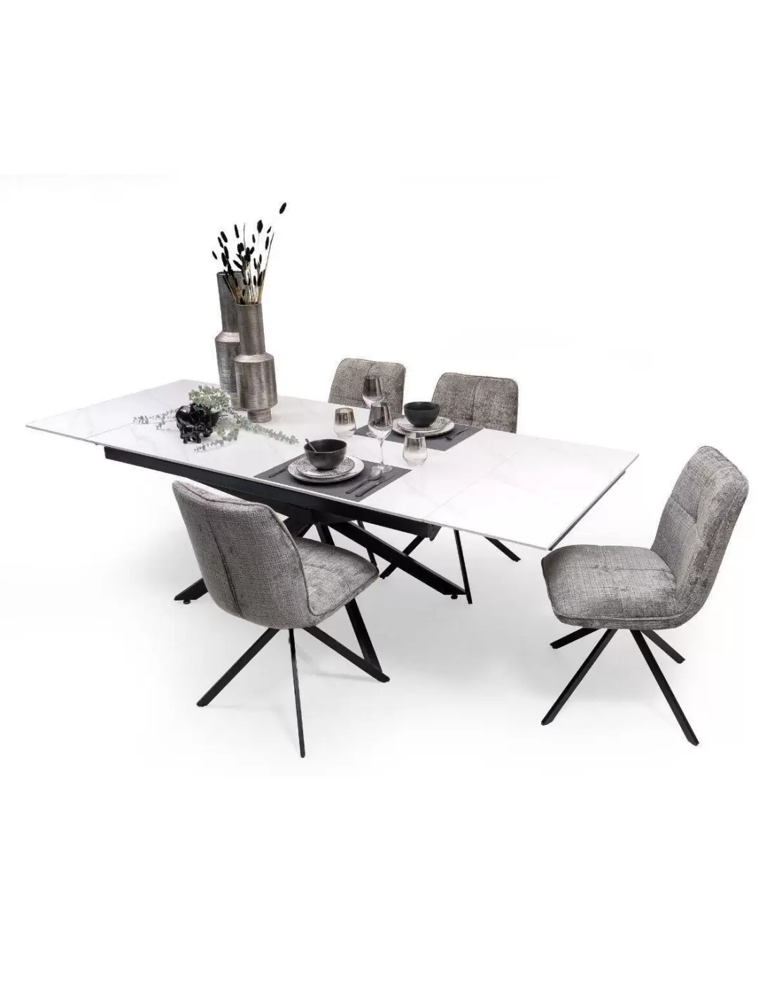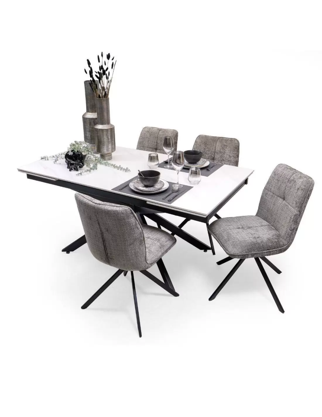 Conjunto de Comedor Extensible KATIA/LUNA con Tapa Cerámica Mármol Blanco + 4 Sillas Giratorias Tapizadas