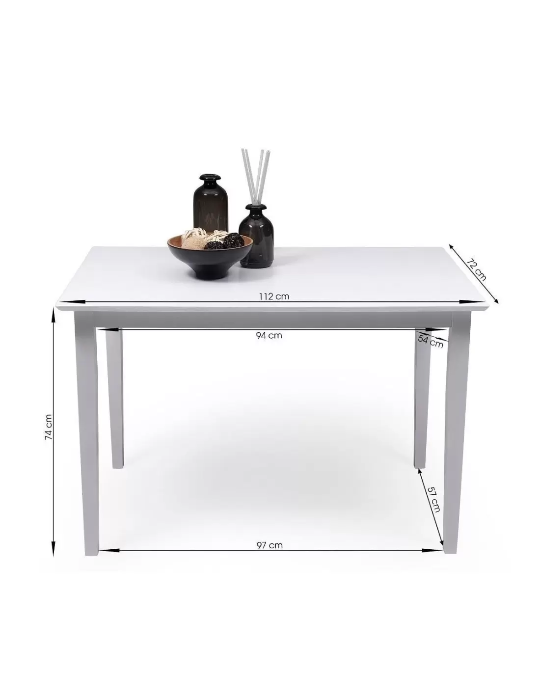 El conjunto KANSAS & DALLAS se compone de una mesa lacada en color blanco de 112x72 cm, práctica y acogedora, con las medidas adecuadas para reunir a cuatro comensales en ella.