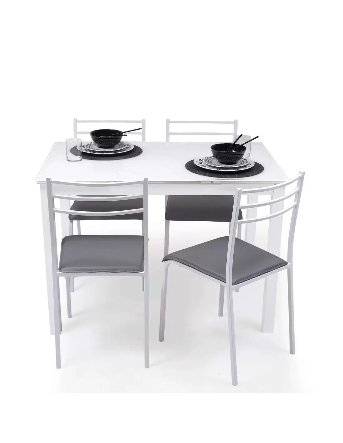 Las sillas de cocina PARIS tienen dos modelos disponibles para elegir o combinar: estructura de metal en gris con asiento pvc en blanco o estructura de metal en blanco con asiento en pvc en gris.