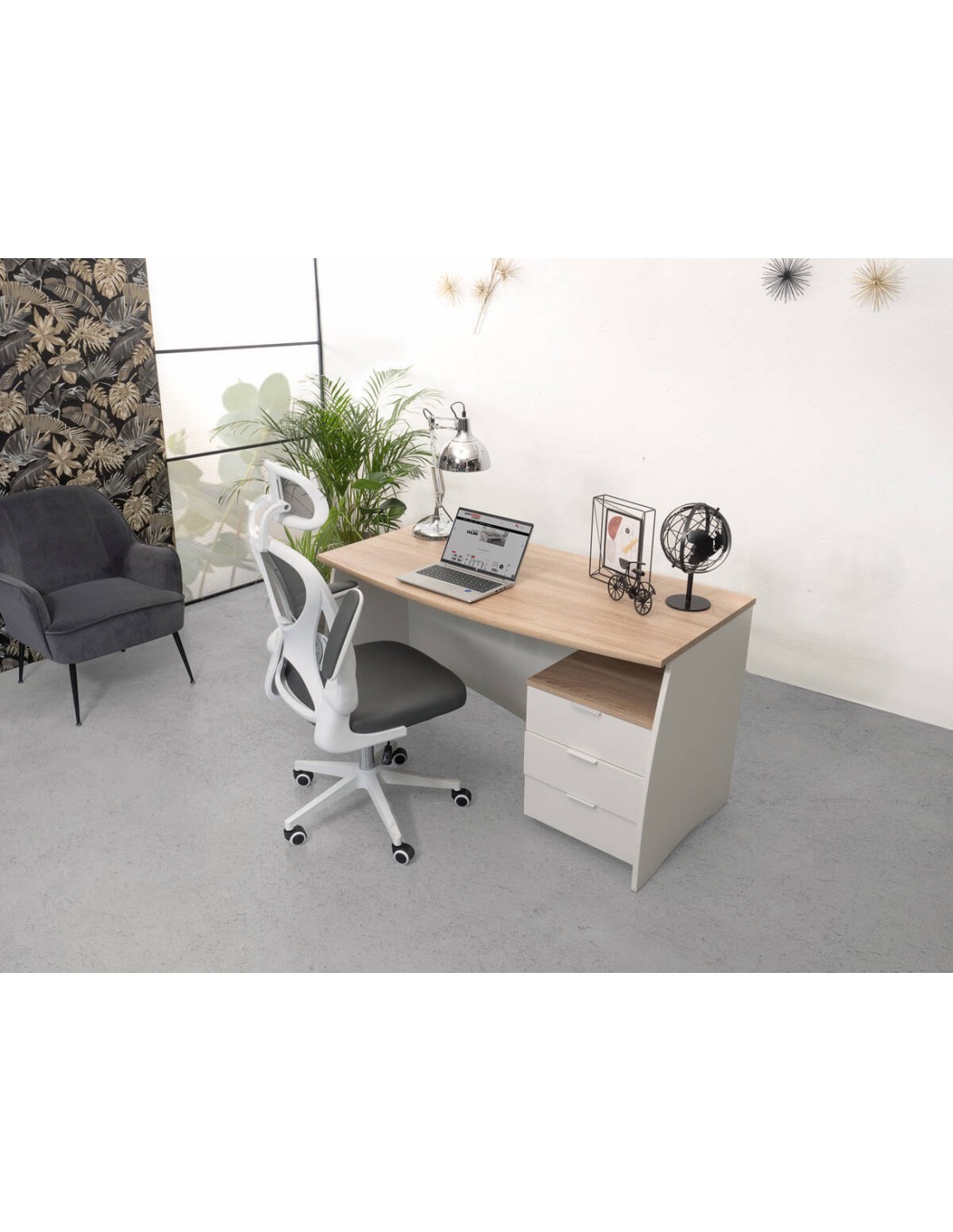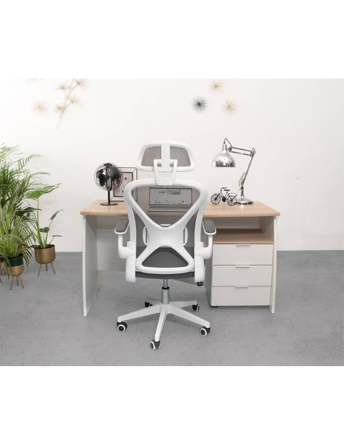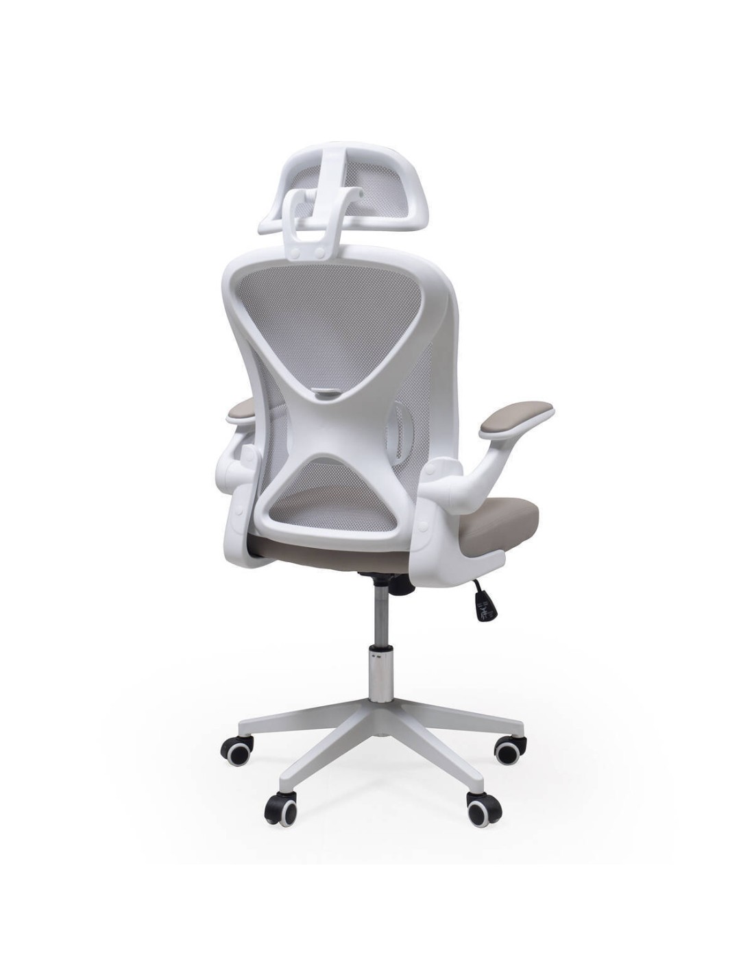 Silla de oficina o estudio ERASMUS estructura de PP color blanco, tapizado tejido 3D, base giratoria y mecanismo de inclinación