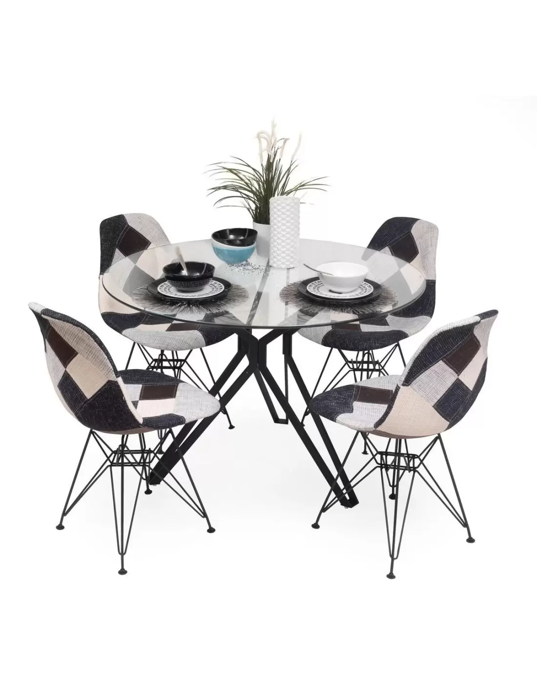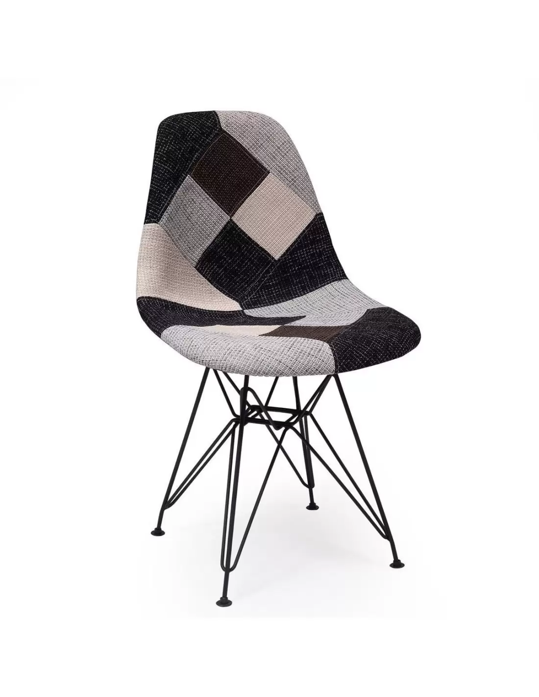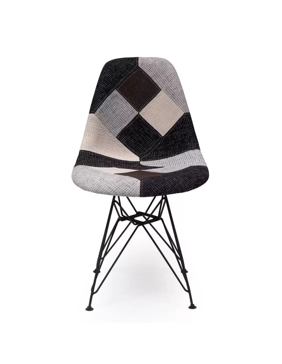 Silla de comedor BAUHAUS TOWER METAL PATCH tapizada en tela patchwork