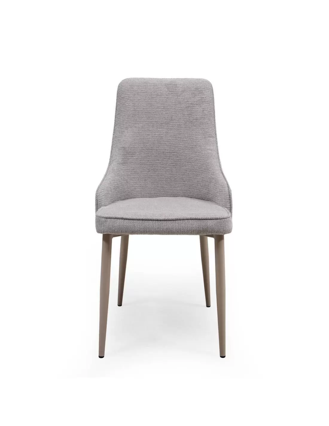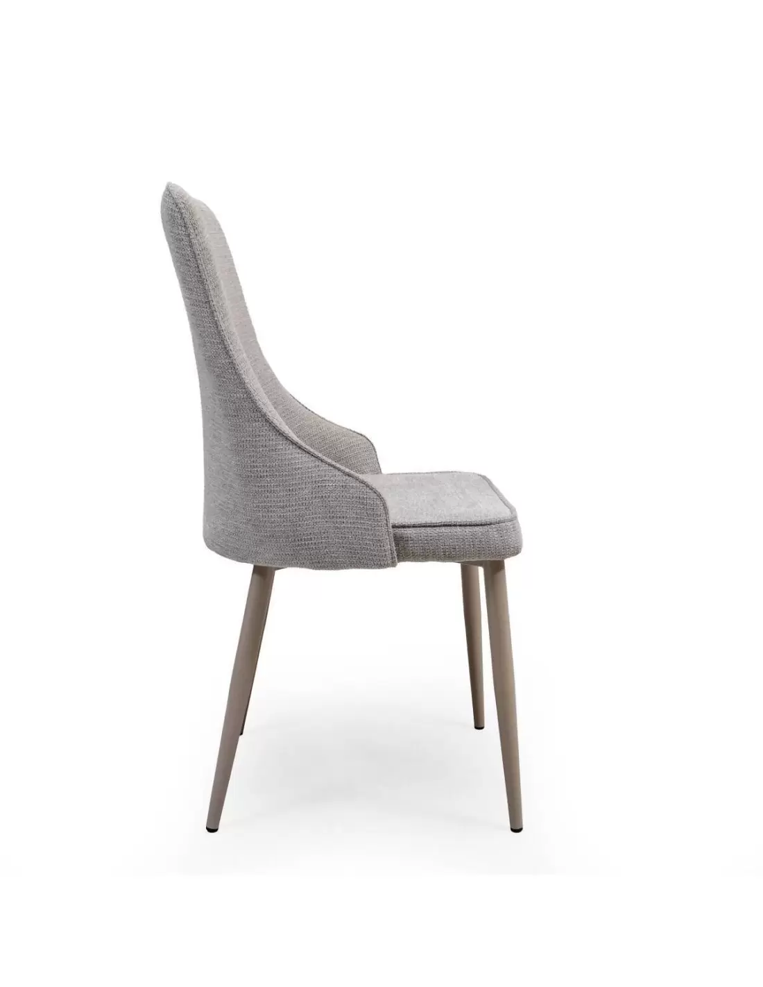 Silla Tapizada QUEEN en Tela Gris y Patas metálicas Crema