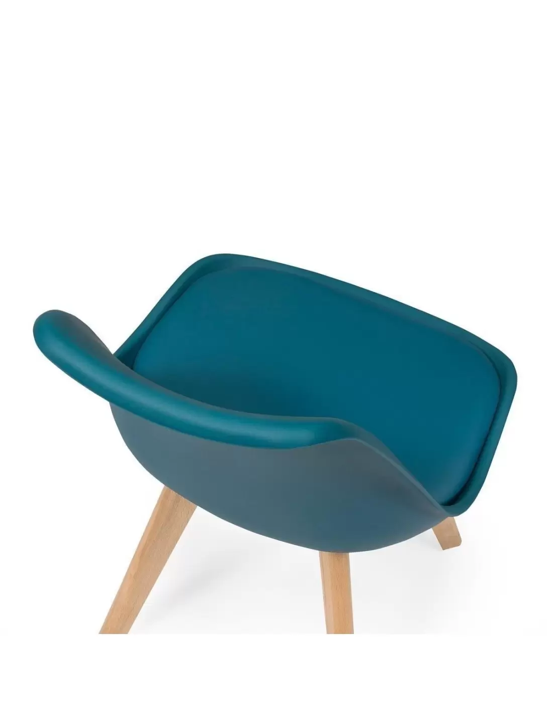Combinan unas originales patas de madera de haya, con un asiento de polipropileno que se adapta a las formas de tu cuerpo y permite un moldeado que las hace muy ergonómicas.