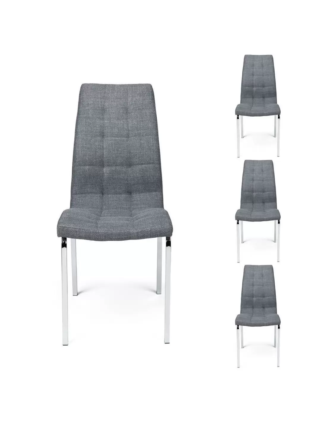 Pack de 4 sillas de comedor ALEX tapizadas en tela patas de metal cromadas