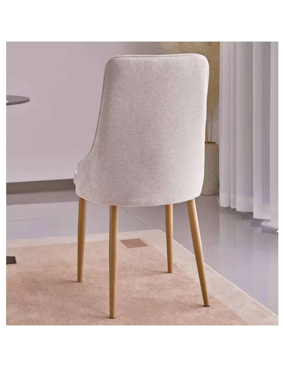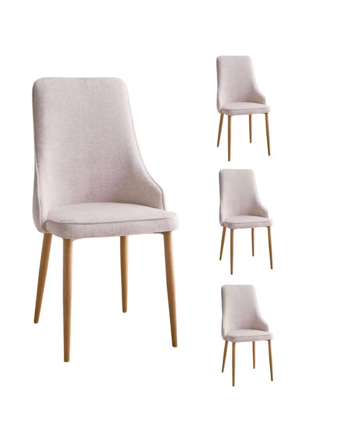 Pack de 4 sillas de comedor QUEEN, tapizadas en tela, patas metálicas en acabado madera