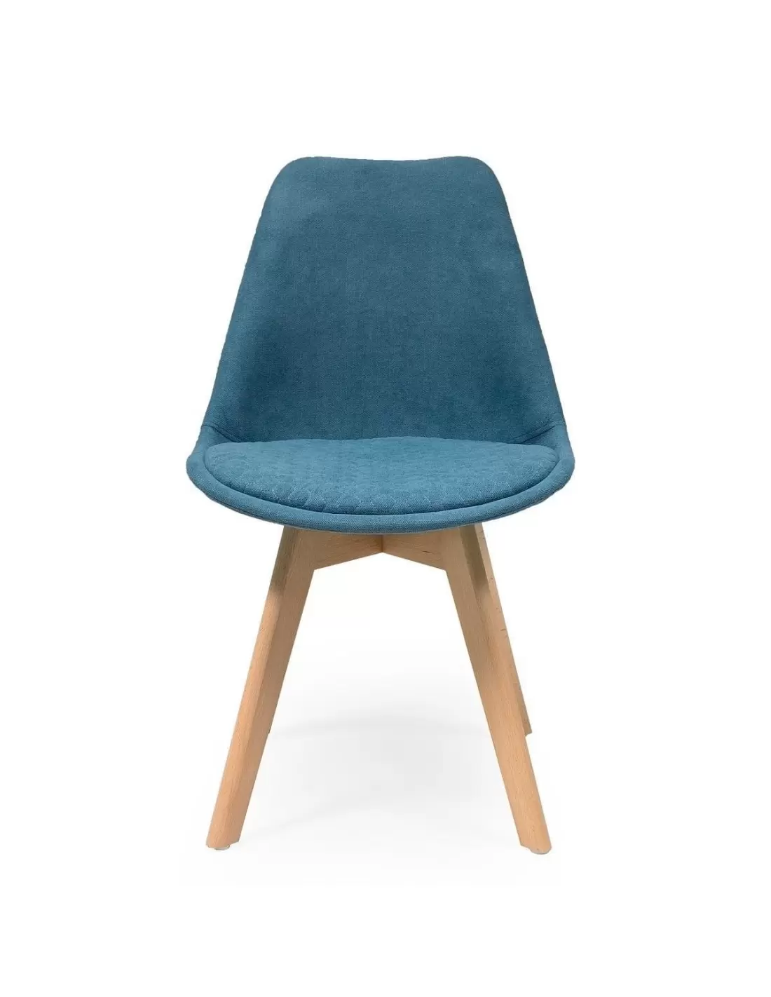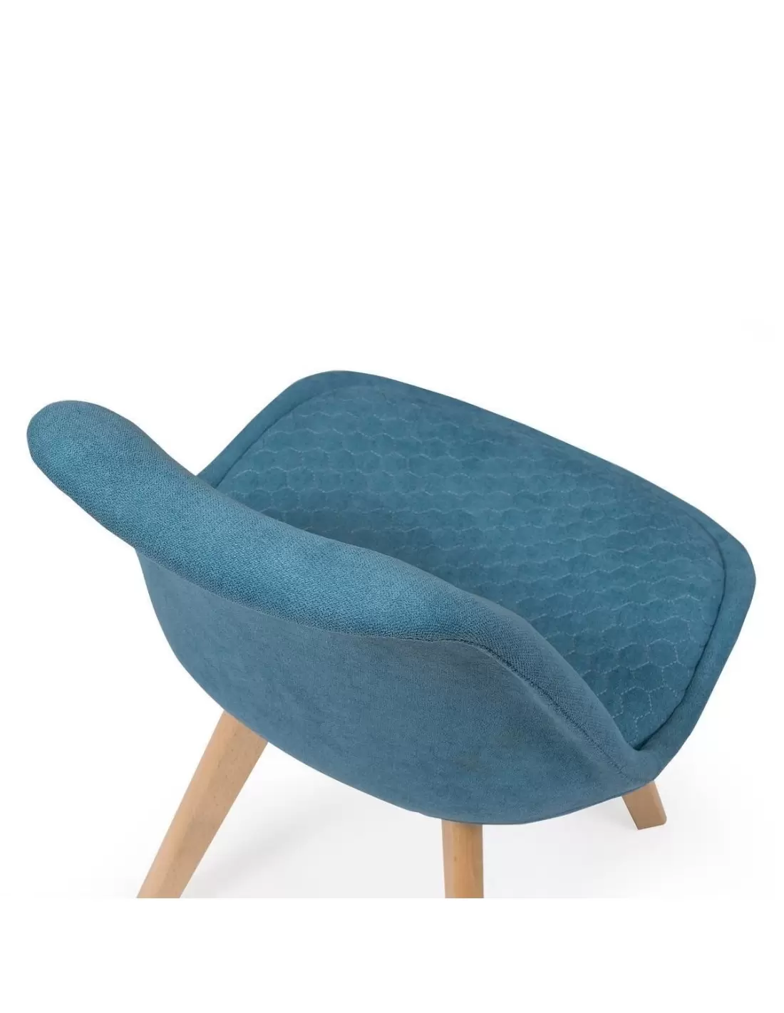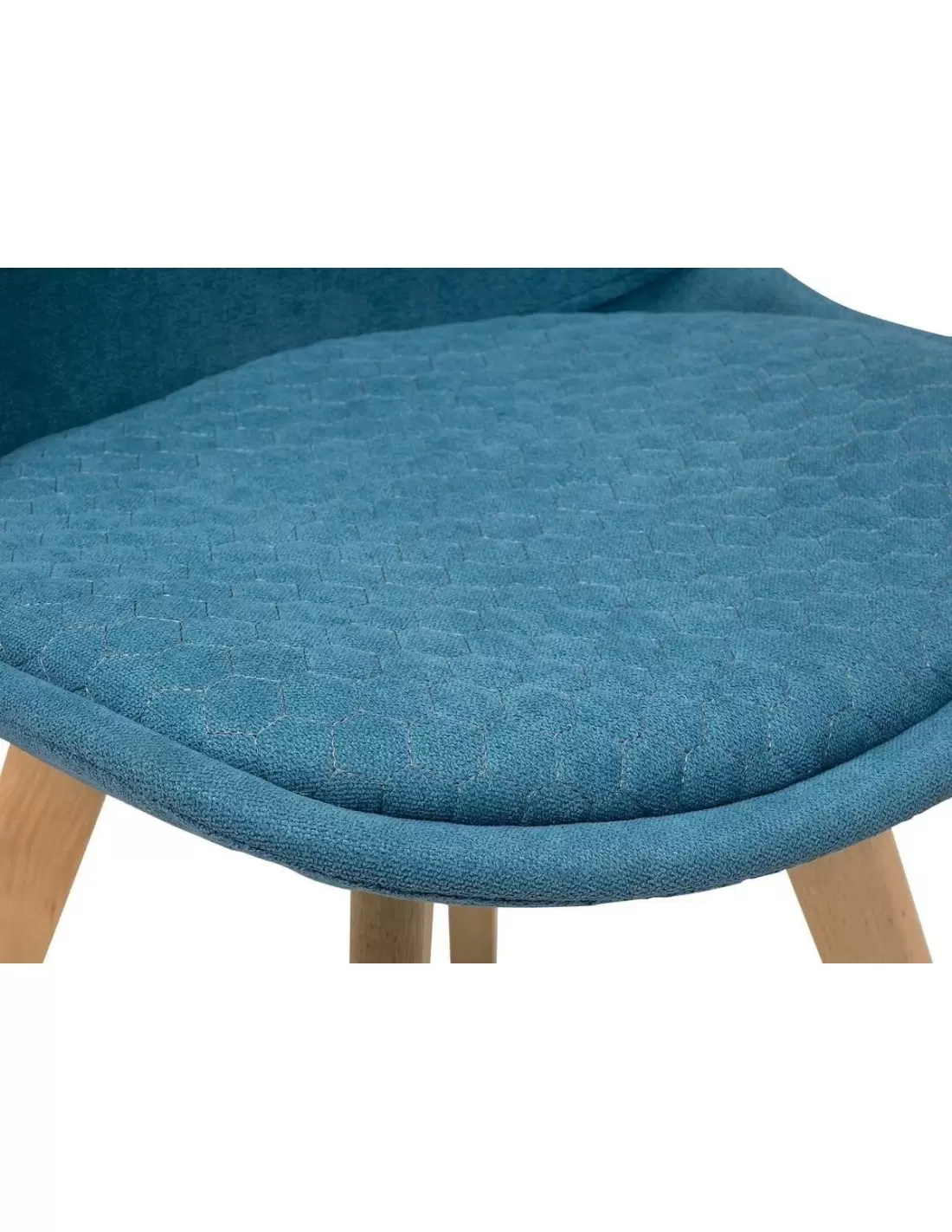 Combina unas originales patas de madera de madera de haya, con un asiento de polipropileno tapizado en una bonita y suave tela pespunteada con dibujo hexagonal.