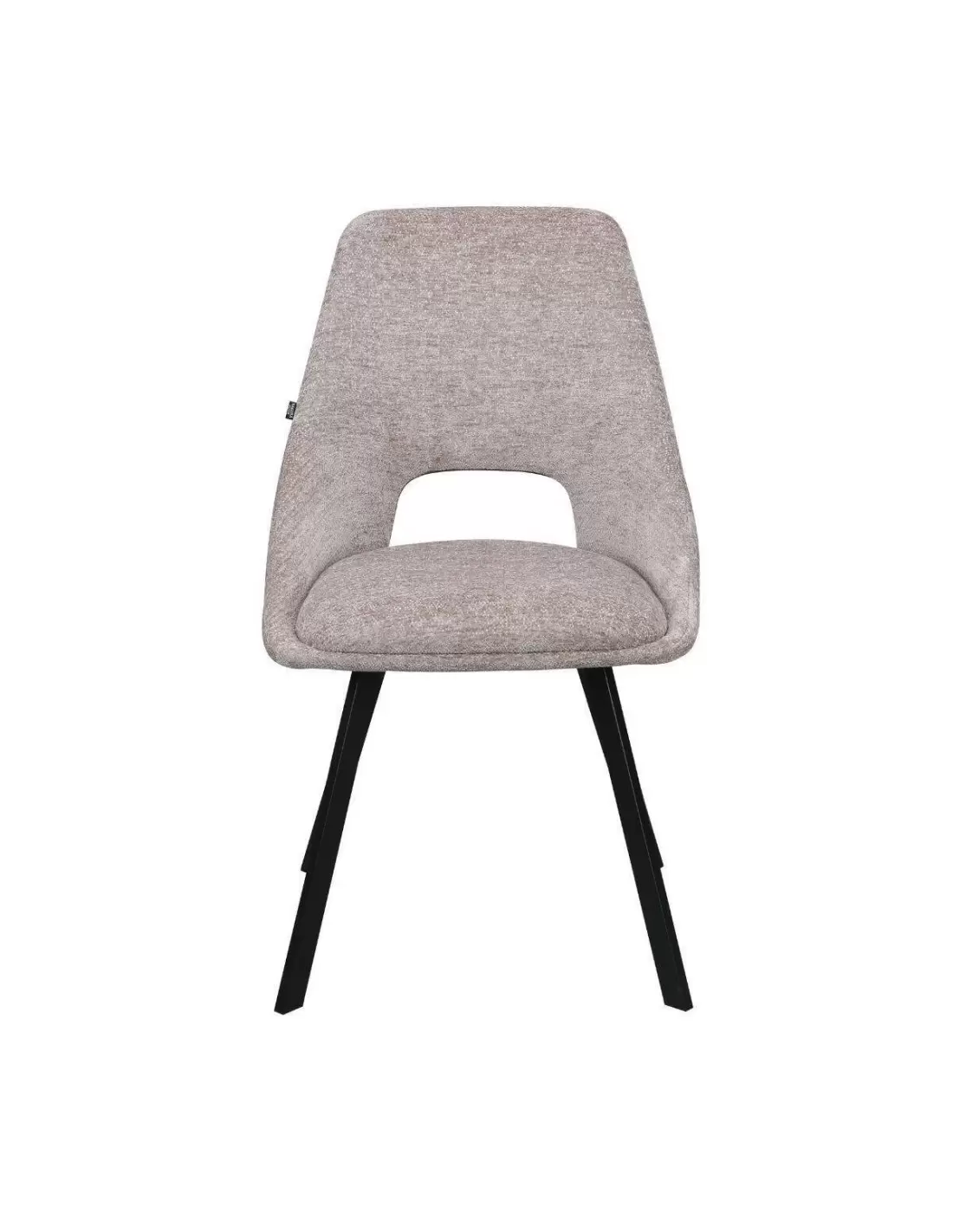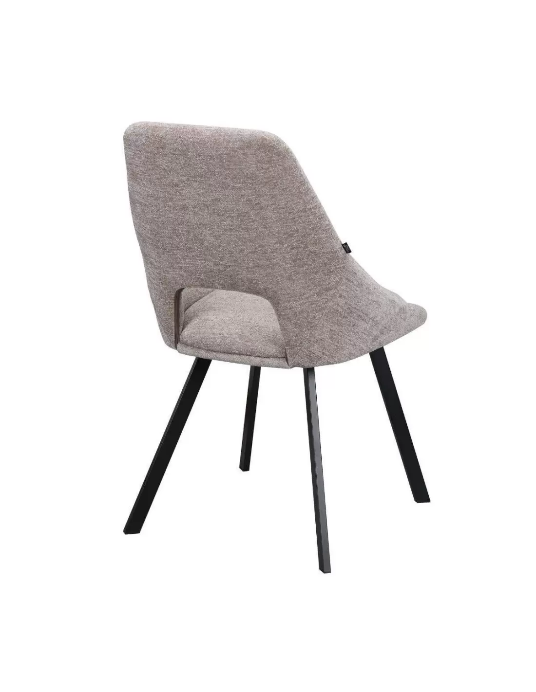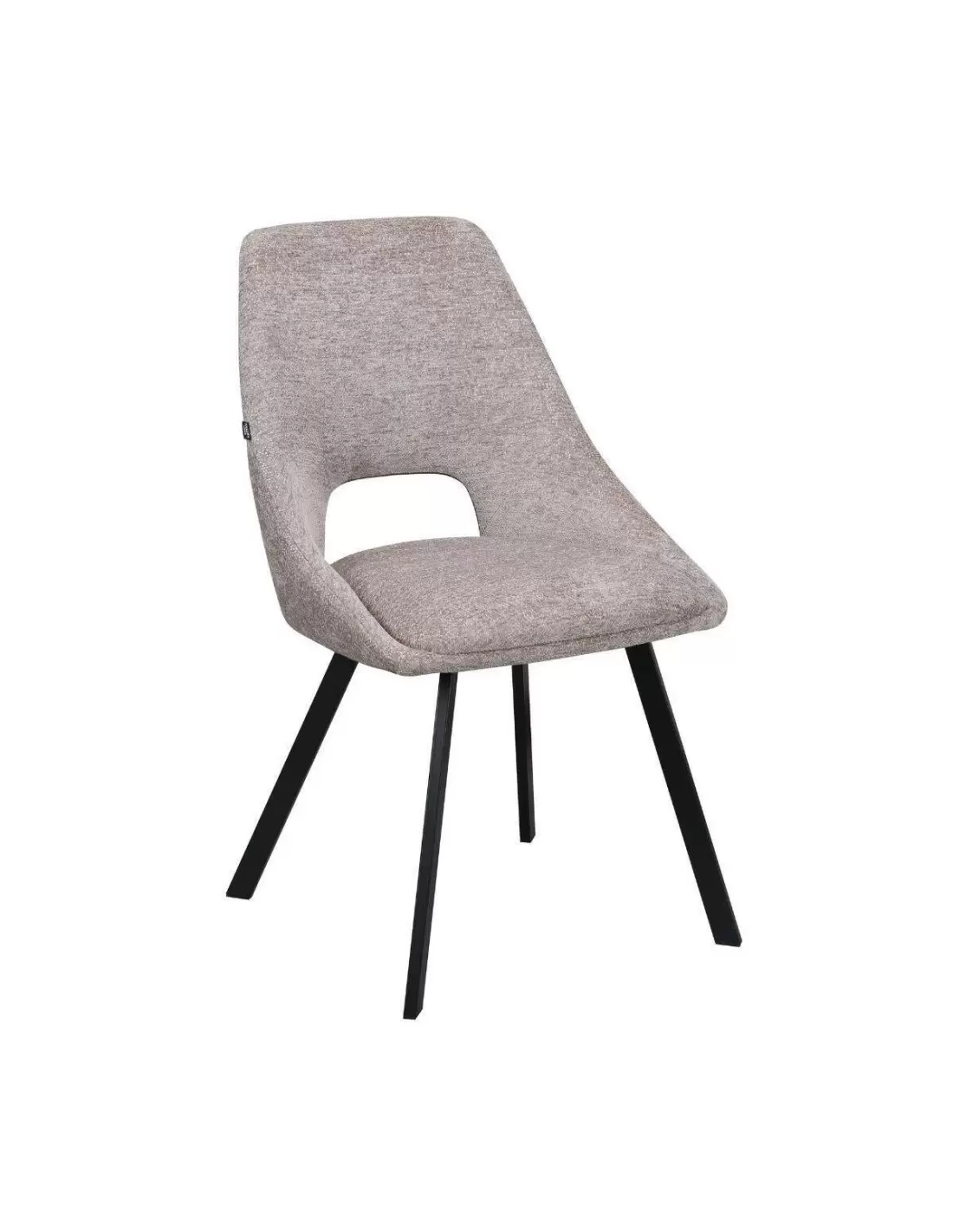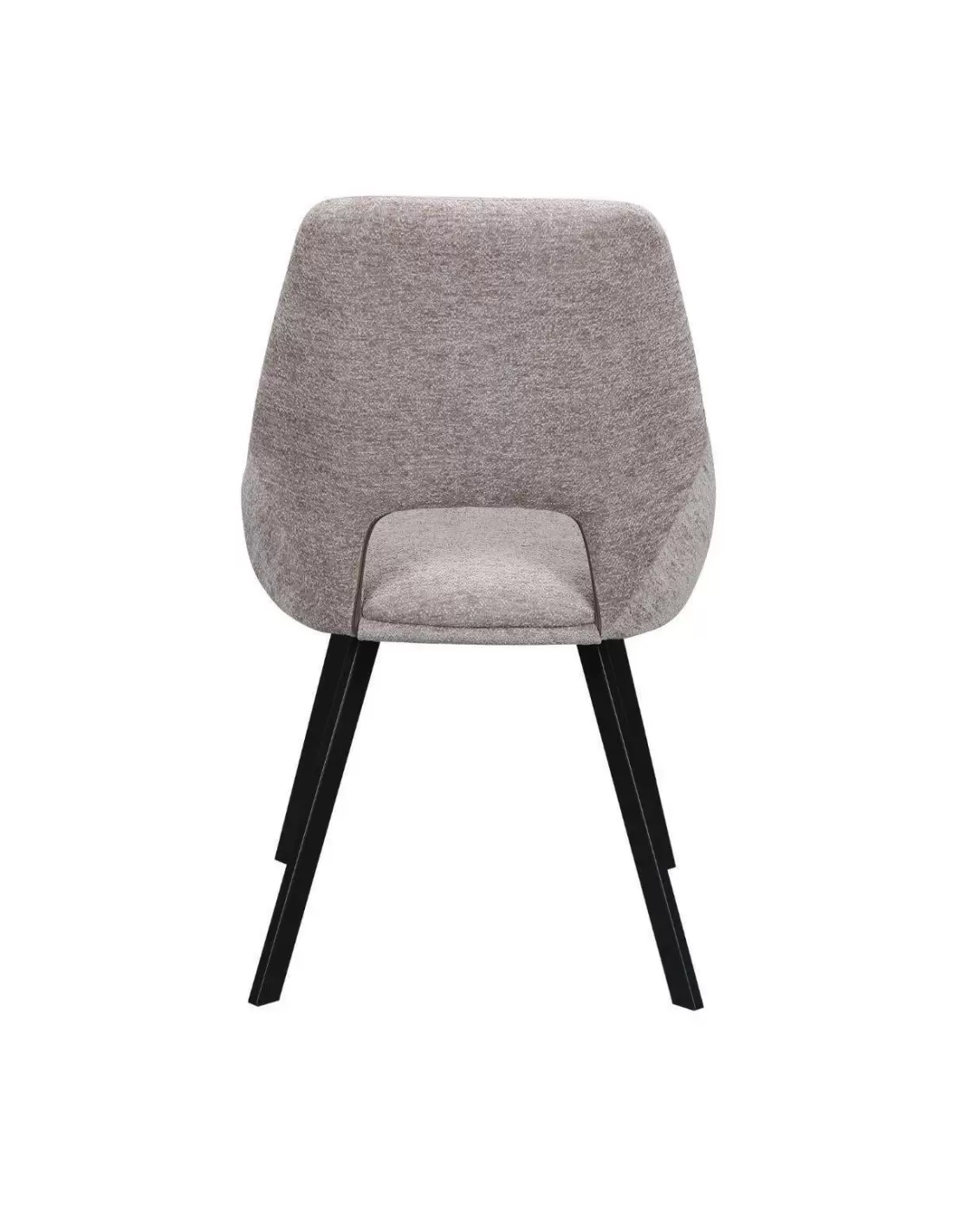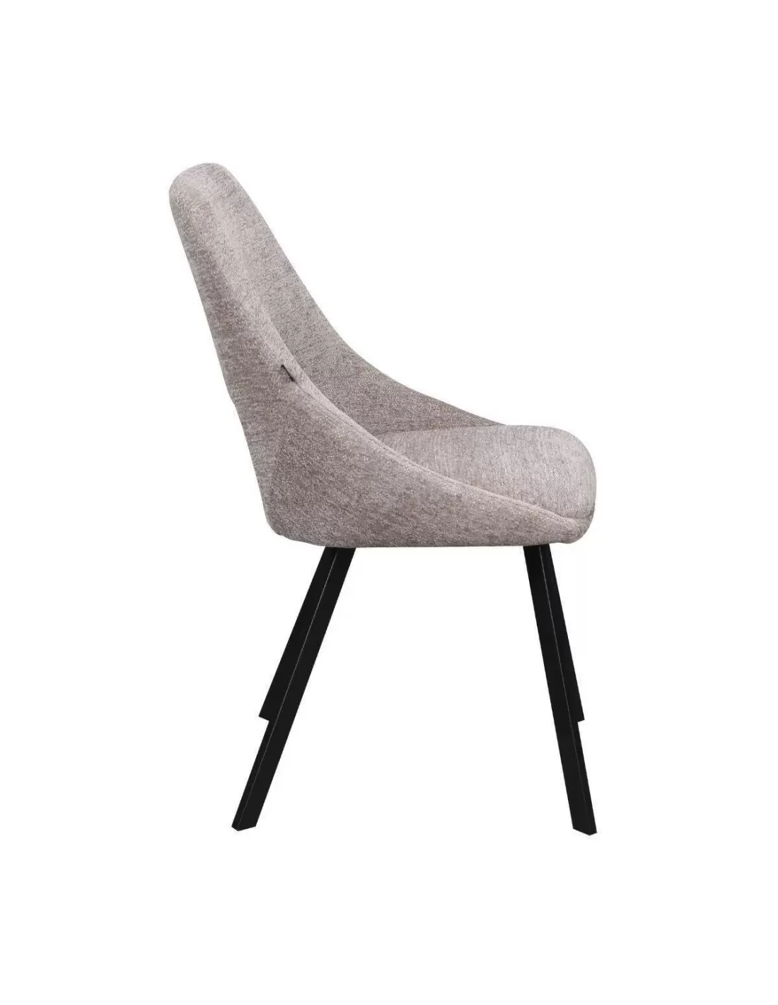 Disponible en tela beige tostado con patas metálicas negra, en tela gris claro con patas metálicas blancas y en tela gris oscuro con patas metálicas negras, lo que la convierte en una opción versátil para comedores, salones, oficinas o espacios de hostelería.