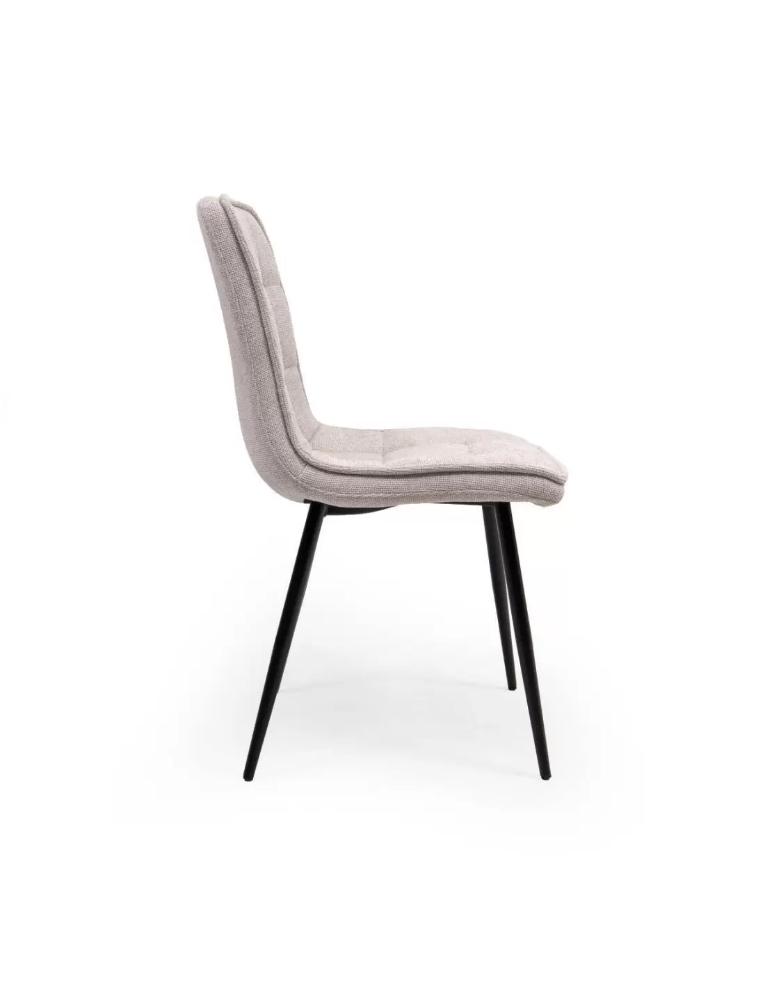 Confort y estilo se unen en esta elegante silla tapizada modelo SALA, ideal para comedores, salones o espacios de trabajo. Cuenta con una estructura de madera revestida en tela de alta calidad, disponible en tres tonos neutros: beige, gris claro y gris oscuro. Su asiento acolchado garantiza una experiencia cómoda, mientras que las patas metálicas en acabado negro aportan estabilidad y un diseño moderno.